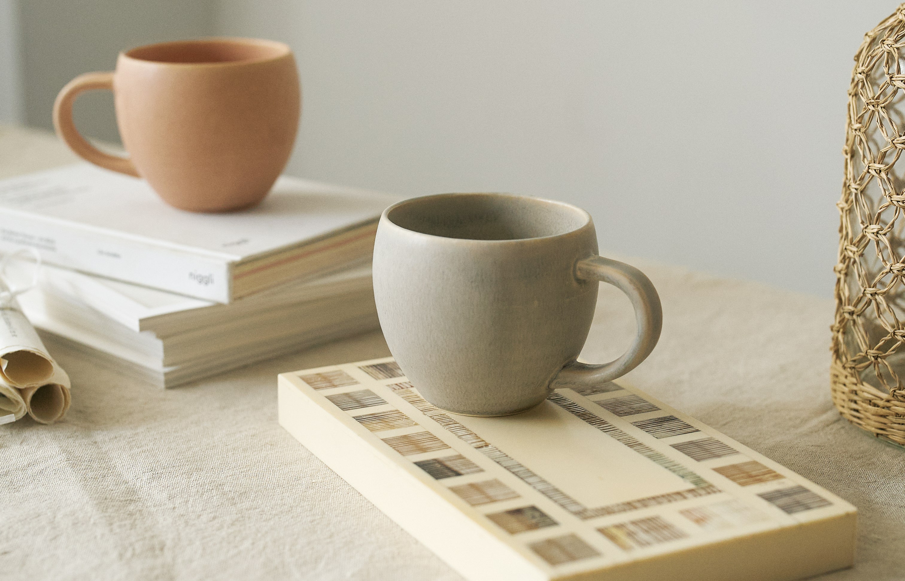 「aito製作所(アイトーセイサクショ)」がお届けする、ガラスの結晶を混ぜこんだような優しいテイストのペアマグ。少しマットな釉薬に結晶を混ぜ、ガラスの破片をちりばめたような表現にしました。優しい風合いのかたちとニュアンスカラーが食事のシーンに溶け込みます。