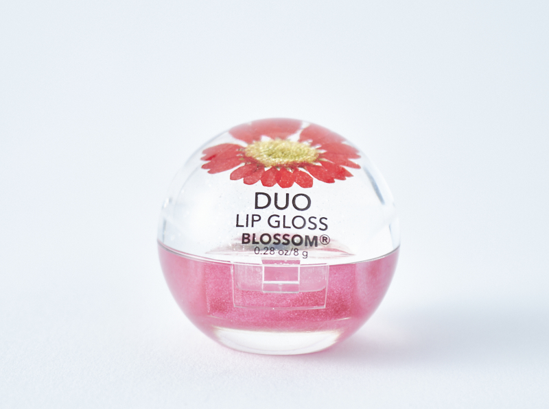 クリア&カラーの2色のグロスがお楽しみ頂けます。香りは甘酸っぱいラズベリーの香り。クリアはそのままでももちろん、口紅のベースやツヤ出しにも。カラーは口紅の上からグロスとして使用すれば、ほんのり色づき細かいラメが唇を華やかに演出します。 持ち運びしやすい大きさなので、一つポーチに入れておけば、気分によって、クリアとカラーを使い分けれます。 「BLOSSOM」らしい生のお花も入っていて、持っているだけで気分が上がりそう。