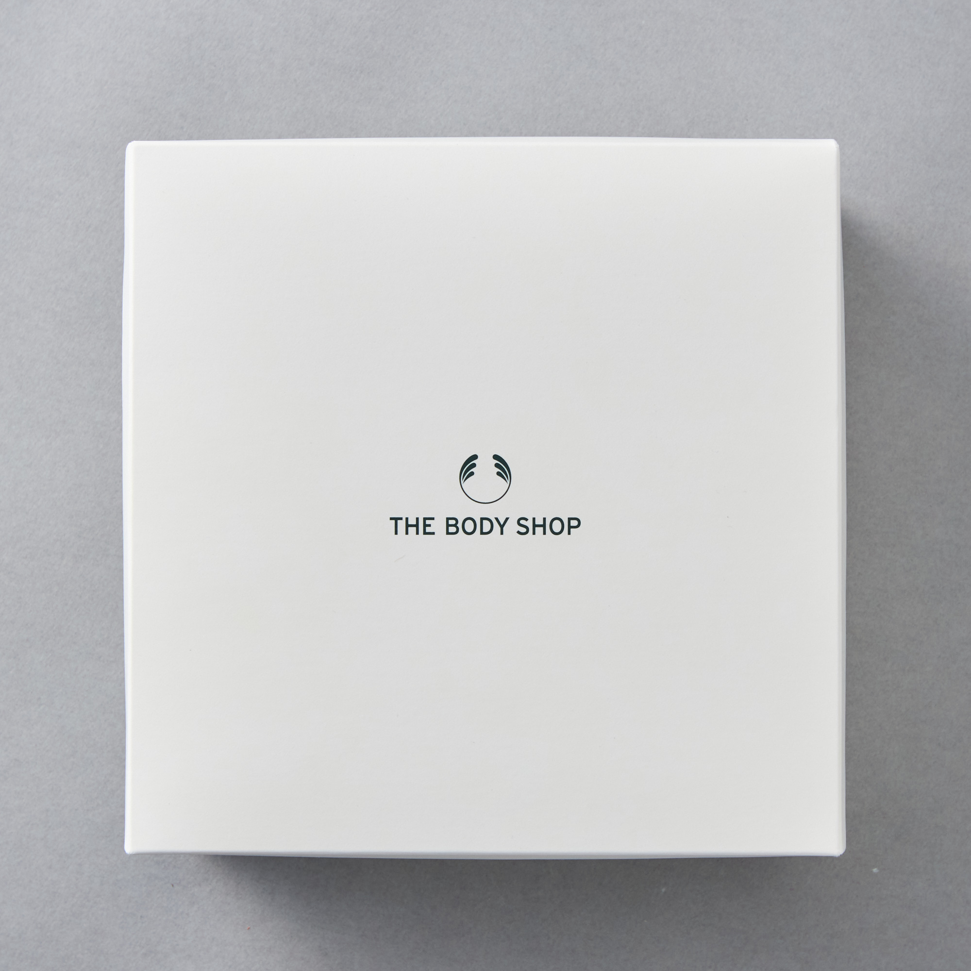 THE BODY SHOPのブランドBOXに商品をお入れしてお届け。そのまま相手の方にお渡しいただけるので、贈り物にぴったりなセットです。