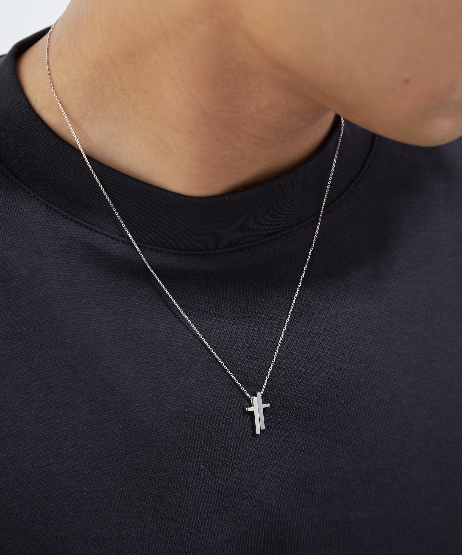 2パーツが合わさってクロスを形作るネックレスは、離れていてもお互いを思い合うおふたりのよう。他にないデザイン性の高さはおふたりだけの宝物となります。レディースのデザインもあるので、ペアで楽しむことができます。記念日や特別な日のプレゼントにいかがでしょうか。