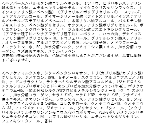 | 内容量 | 【へアバーム】 40g 【ヘアケアミルク】 100ml |