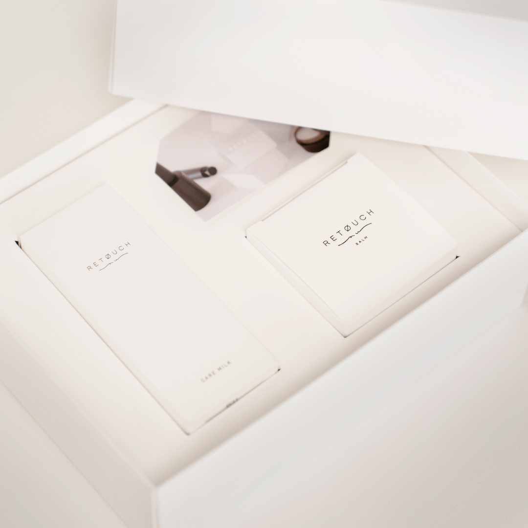 新たな時代の身だしなみツールを創造する「RETØUCH(レタッチ)」のGIFT BOXです。幅広いスタイルのセットに使えるヘアバームと、「ケアトリートメント」・「ベーススタイリング剤」として2通りの使い方が可能なケアミルクがセットに。オリジナルのギフトボックスにお入れし、さらにショッピングバッグも付いているので贈り物にぴったりです、