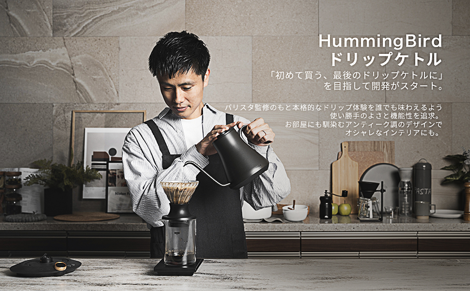 初めてケトルを買う人から、コーヒー愛好家の⽅まで、皆様のニーズを組み合わせた ”究極のケトル”を実現すべく、バリスタ監修のもと開発をスタート。 安定的なドリップ体験を追求した本体デザインに、シビアな温度調整など使⽤者のこだわりにも対応する性能と仕様。さらには細部まで安全性に配慮した設計。 どなたにとっても、このケトルがこだわりのドリップケトルとして最後の1ピースになれるように。 そんな願いを込めたプロダクトです。