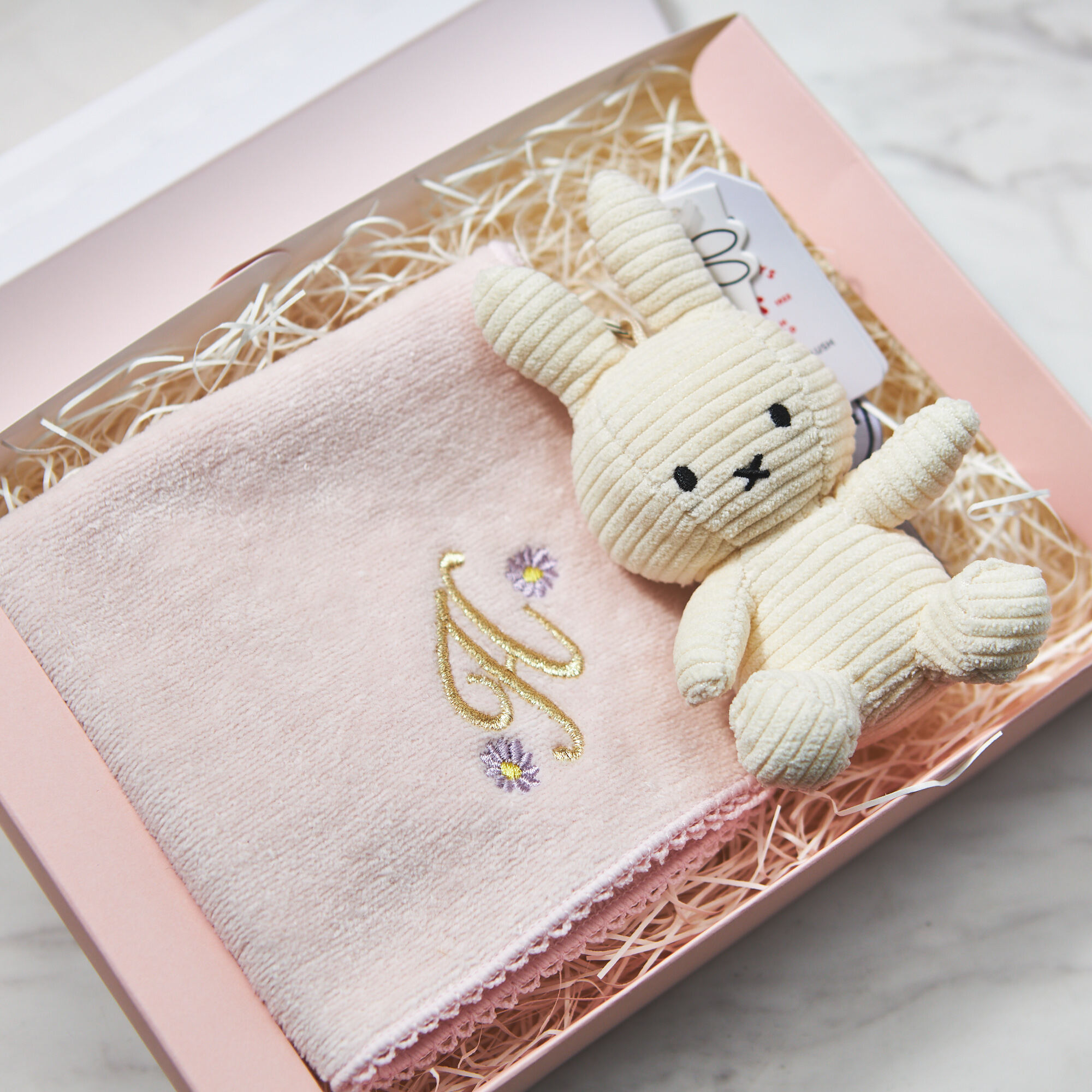 「BON TON TOYS(ボントントイズ)」から愛らしいフォルムでコーデュロイのミッフィーキーチェーン、「karendo(カレンド)」オリジナルデザインのお花の刺繍が入ったタオルハンカチがセットになりました。「petit TANP」オリジナルギフトBOXでラッピングしてお届けいたします。