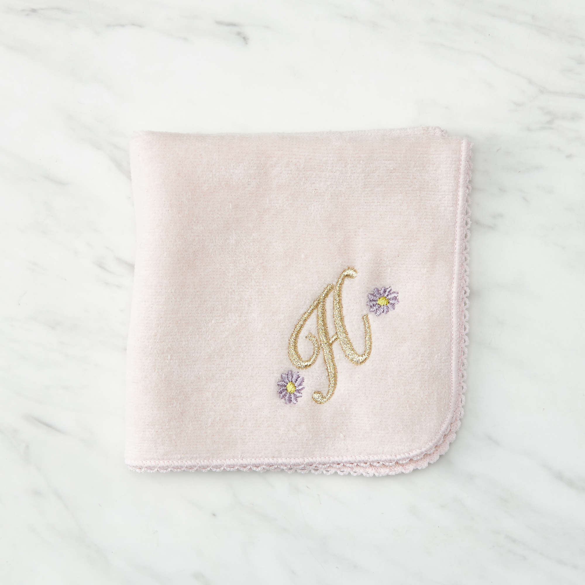 イニシャルとガーベラやローズの刺繍が入ったkarendoオリジナルデザインのタオルハンカチ。 肌触りも柔らかく、汗や水分などを素早く吸収してくれます。 お肌にも優しい、安心の日本製の今治タオルです! ※6種類からお選びいただけます。