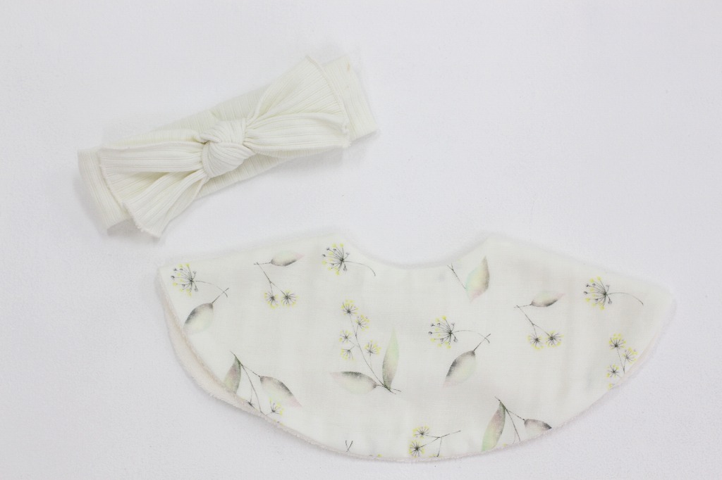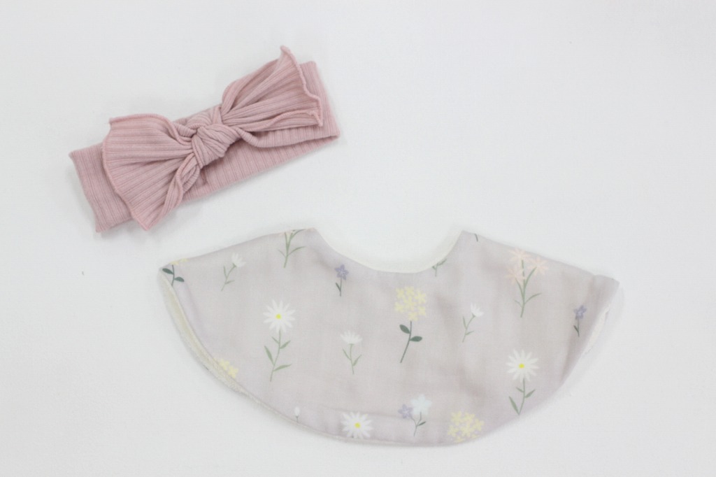 お揃いの「Babyヘアバンド」「スタイ」の2点がセットになった、出産祝いにおすすめのギフトセットです。ダブルガーゼ素材で、赤ちゃんの肌に優し素材を使用しています。 【スタイ】 どんなお洋服にも合う、まあるいシンプルで使いやすいスタイです。吸水性のいいダブルガーゼ仕上げなので、汚れも食べこぼしもしっかりキャッチ!赤ちゃんの肌を傷つけません。 スナップボタンだからワンタッチで留めやすいのも魅力です。しっかりした縫製の日本製です! 【ヘアバンド】 伸縮性バツグンのリブターバンは、柔らかい生地なので、赤ちゃんの頭を締め付けません。季節を問わず、年間で使えるリブターバンです。