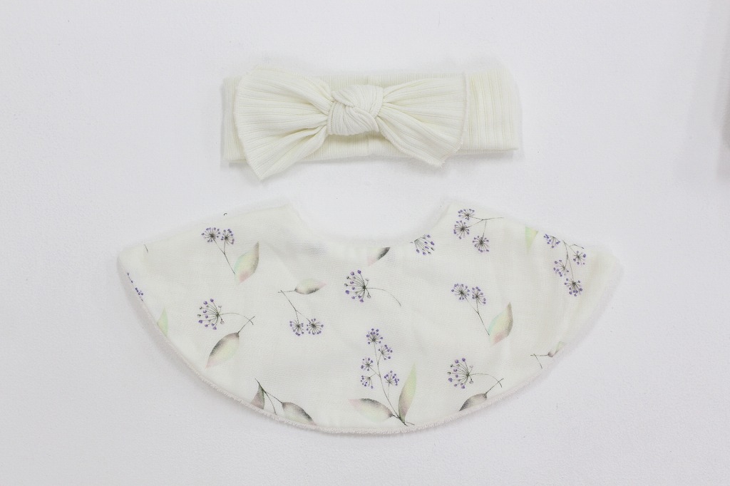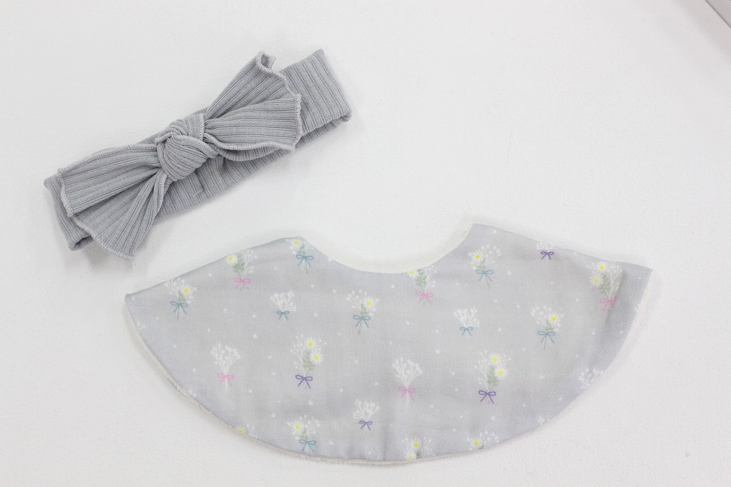 | 素材/原材料 | 【ヘアバンドとスタイ】 スタイ:綿100% ヘアバンド:ポリエステル75%・レーヨン20%・スパン5% 【フラワーオーナメント】 ドライフラワー、プリザーブドフラワー、プラ(容器)、リボン |