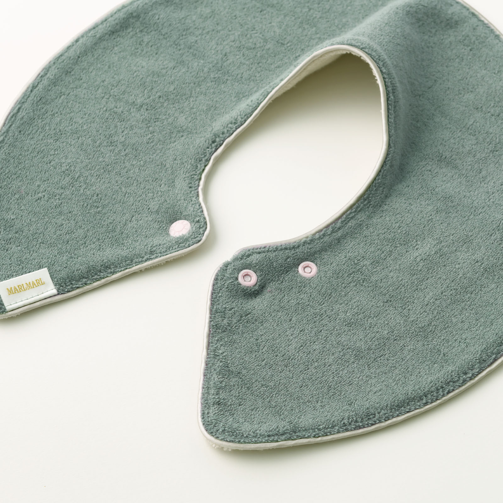 メレンゲのような肌触り、リバーシブル仕様が二度おいしいコットンパイル生地のスタイ。 表はフレーバーが香るようなニュアンスカラー、裏は繊細な淡色。表と裏との表情の違いが、一年を通してコーディネートの幅を広げます。 ※刺しゅうのカラーは、シルバーです。