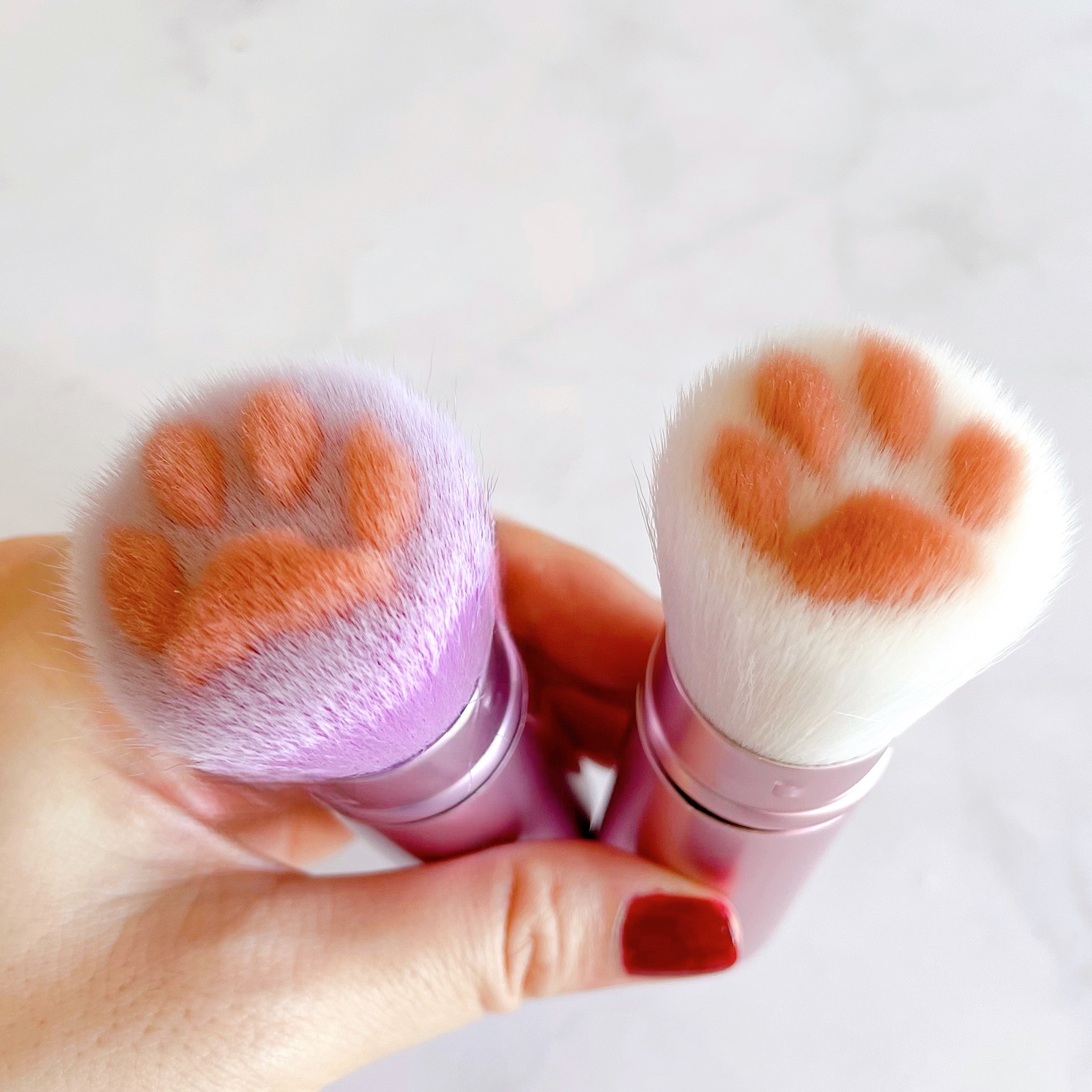 もふもふ上質なナイロン素材の毛でできた可愛いメイクブラシです。 メイクポーチに入るサイズのメイクブラシが欲しい!という声でうまれました。 可愛いものやネコが好きな女性におすすめです。
