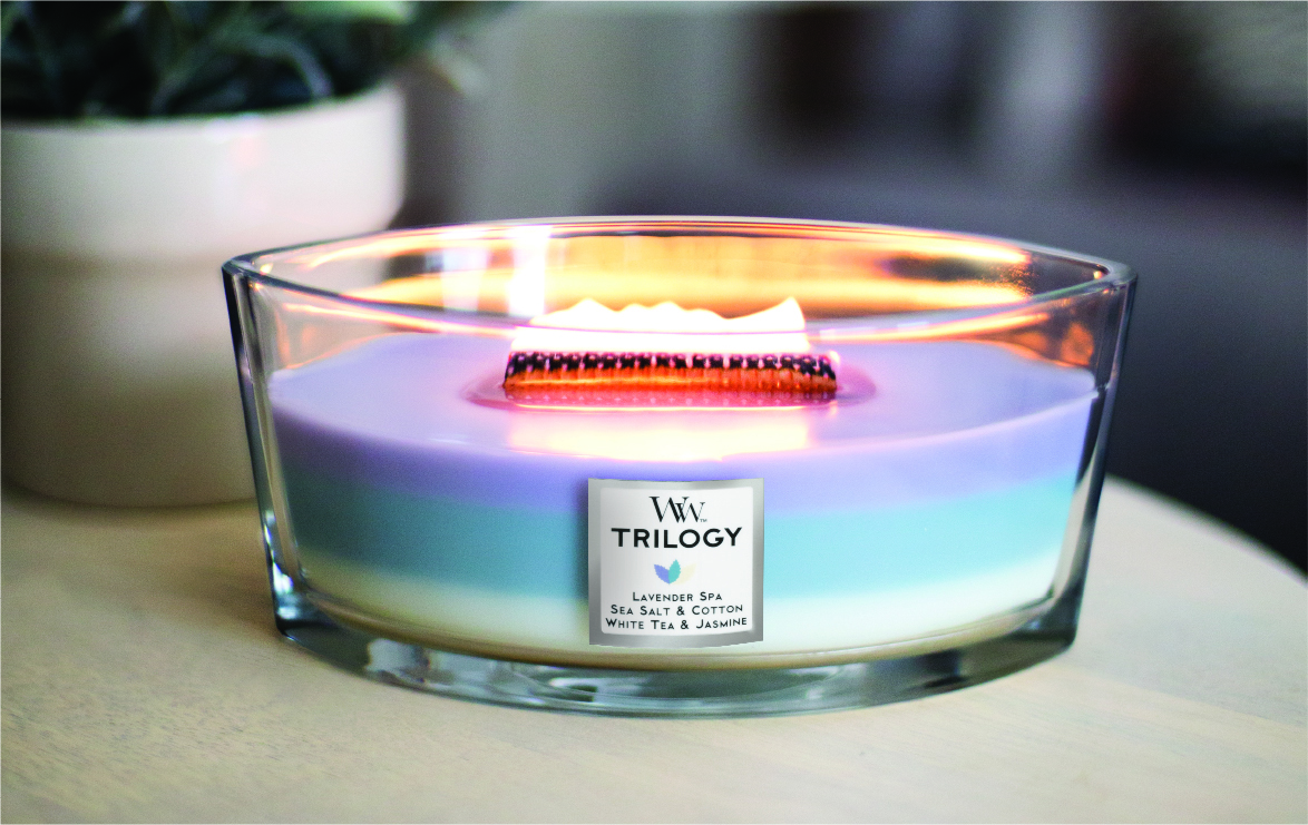 ハース(Hearth)とは暖炉のこと。WoodWick(木製芯)から聞こえてくる心地よい音に加え、暖炉で揺らめく炎を眺めている時のような心地よさが味わえます。3層の色と香りが楽しめるトリロジータイプ。溶けていく色と香りのグラデーションを楽しめるアロマキャンドルです。