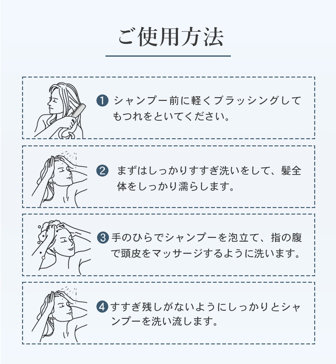 スカルプブラシシリーズで累計250万本以上の販売実績を持つエスハートエスは、「ブラシでするシャンプーを世界の文化にする」というミッションのもと、ブラシと相性の良いシャンプートリートメントを開発しました。 ブラシを併用することで、泡が汚れをしっかり落とし、ヘアケア成分の浸透を助けてくれます。また、ブラシによる頭皮マッサージが血行を促進し、頭皮環境を整えます。