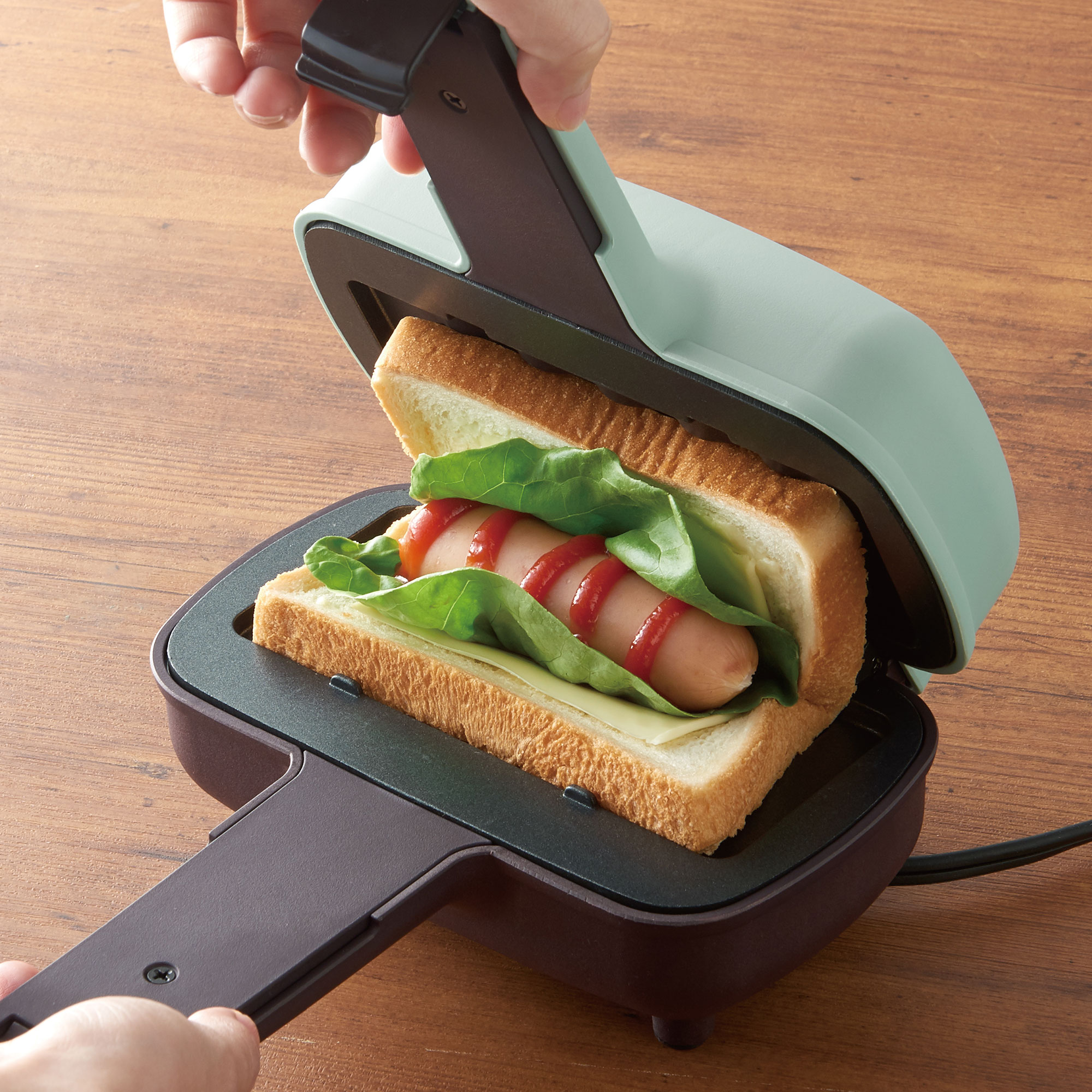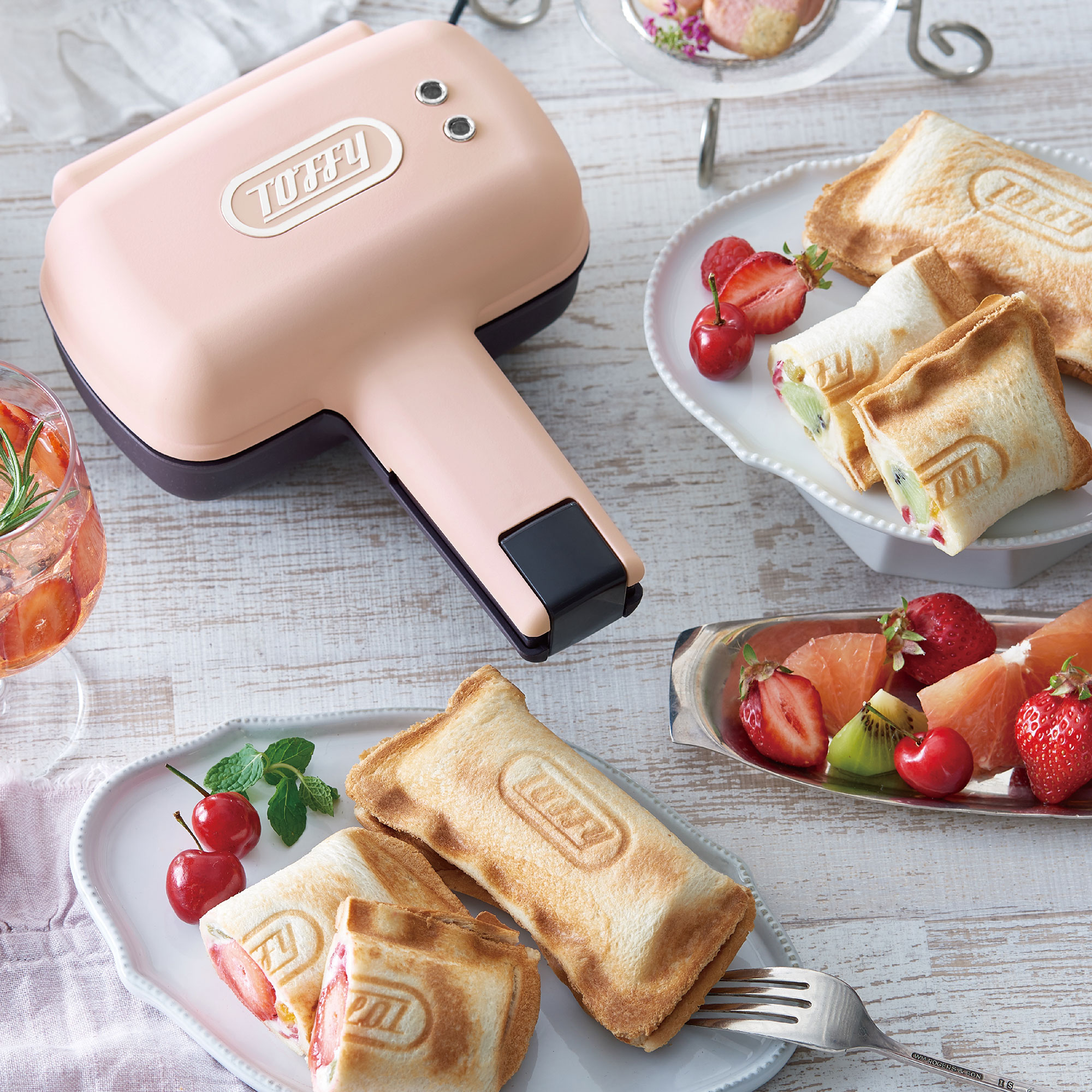 大口注文・法人のお問い合わせはこちら食パン1枚で作れる電気ホットサンドメーカーです。少食な方でも食べやすい食べ切りサイズとなっており朝食やおやつにもおすすめです。 ホットケーキミックスを使ってデザートのようなホットサンドも作れます。 ホットサンドは大体が2枚以上のパンを用いてつくるため、量が多くて食べきれない、食べにくいなどの不満を解消します。 1個が小さいので好きな具材を持ち寄ってパーティーなどでも活躍しそうです。