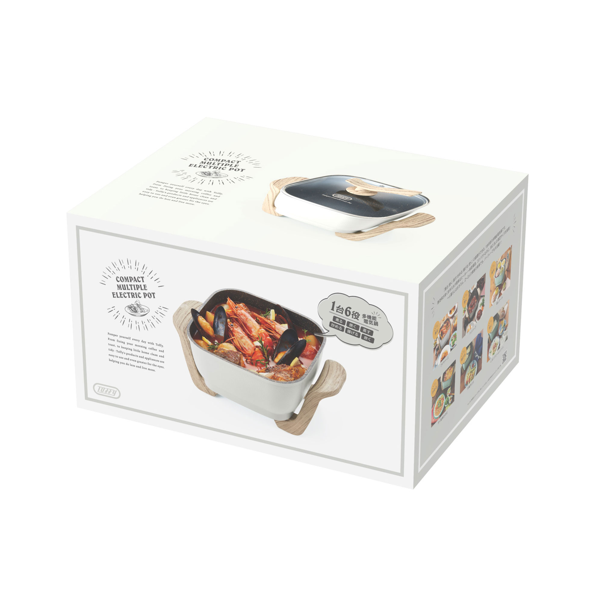 大口注文・法人のお問い合わせはこちら「煮る・焼く・蒸す・炒める・揚げる・炊く」ができる1台6役の多機能電気鍋です。1人~2、3人前のちょうど良いサイズ感で、手軽に調理を楽しみたい方や料理好きの方の日常使いにおすすめです。 人が集まった時は鍋、普段は煮物や煮込み料理、鍋に深さがあるので揚げ物などマルチに使うことができます。また、1台あれば色々な用途で使えるため1人暮らしの方へのプレゼントや結婚祝いにもおすすめです。