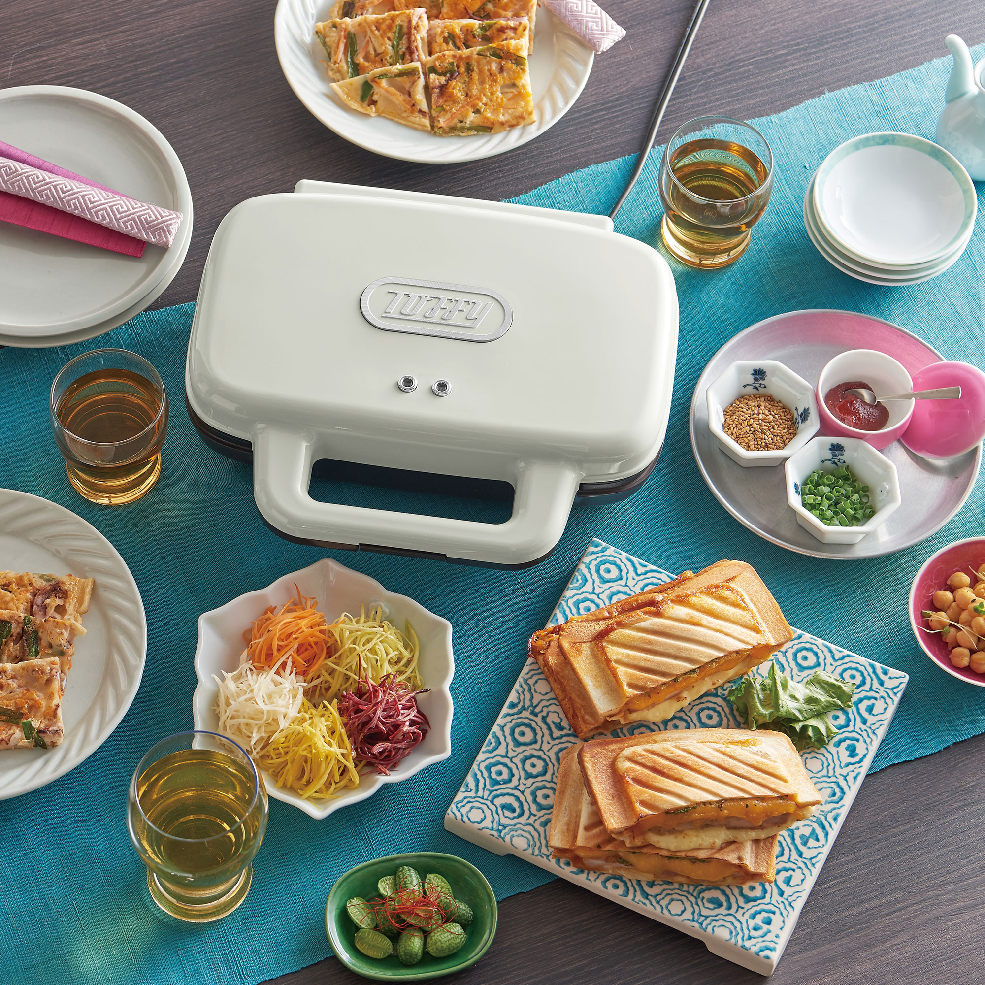 パンを置いてお好みの具材を挟むだけで簡単に熱々のホットサンドが作れる電気ホットサンドメーカーです。仕切りのないワイドプレートを採用。操作もシンプルな電源スイッチで毎日でもお使いいただけます。母の日など家族へのプレゼントとしておすすめです。