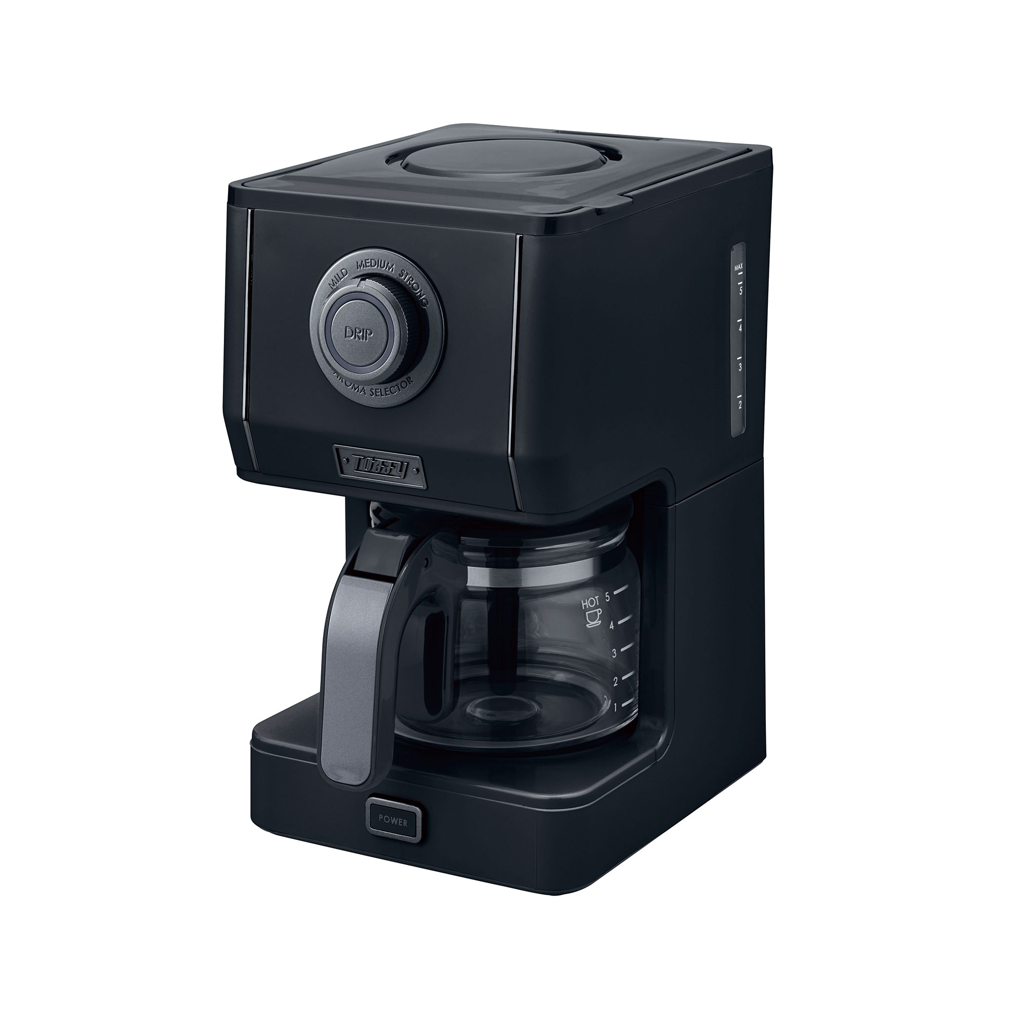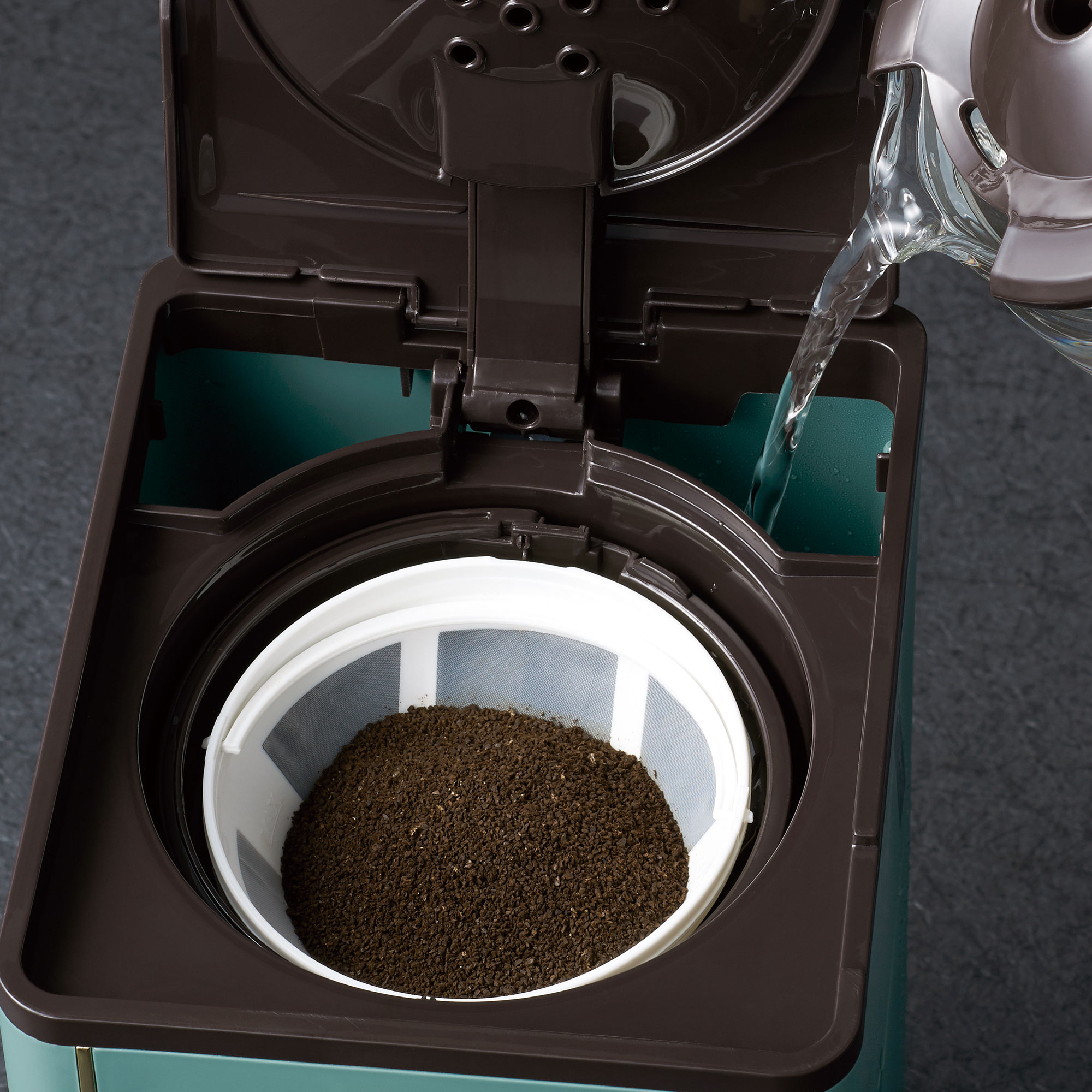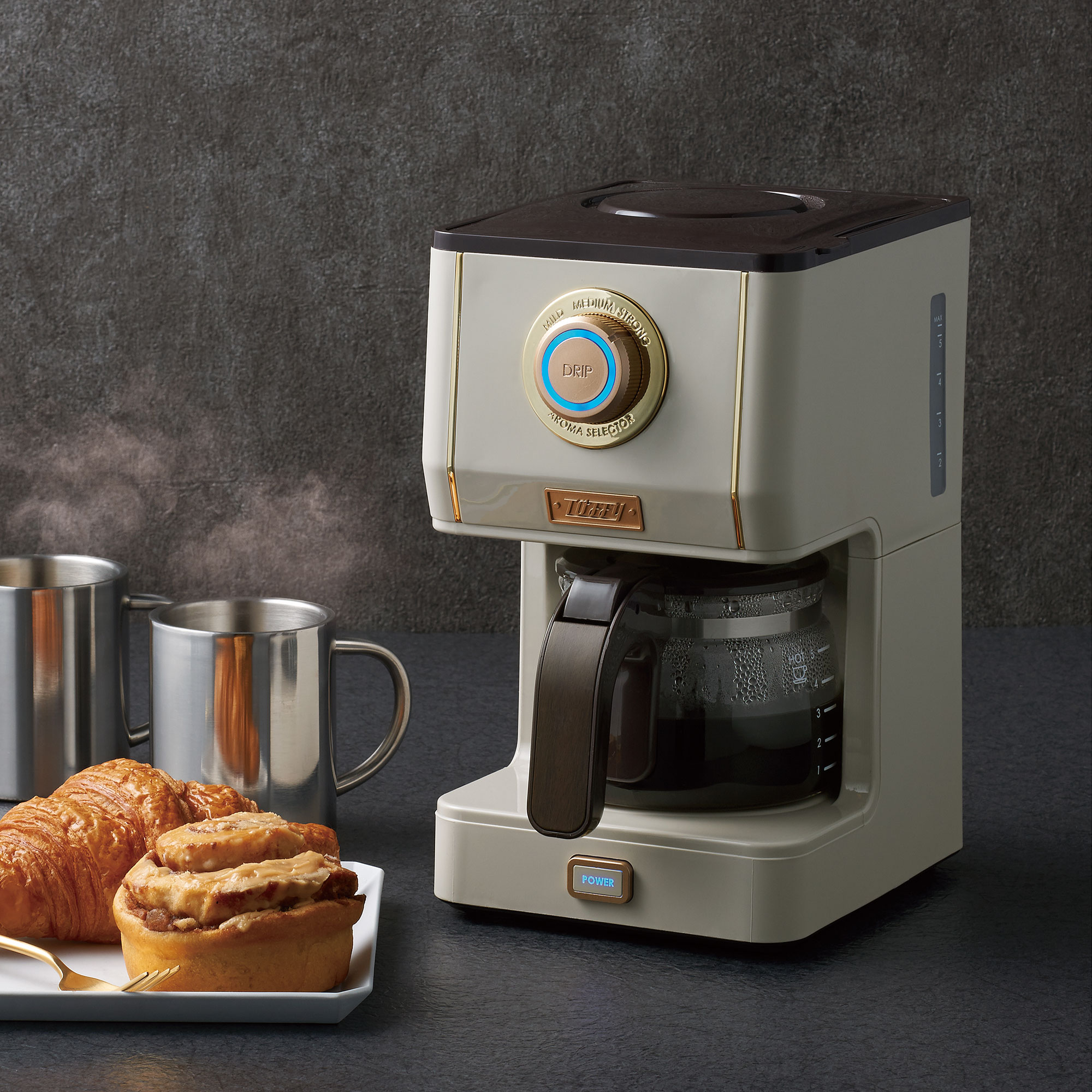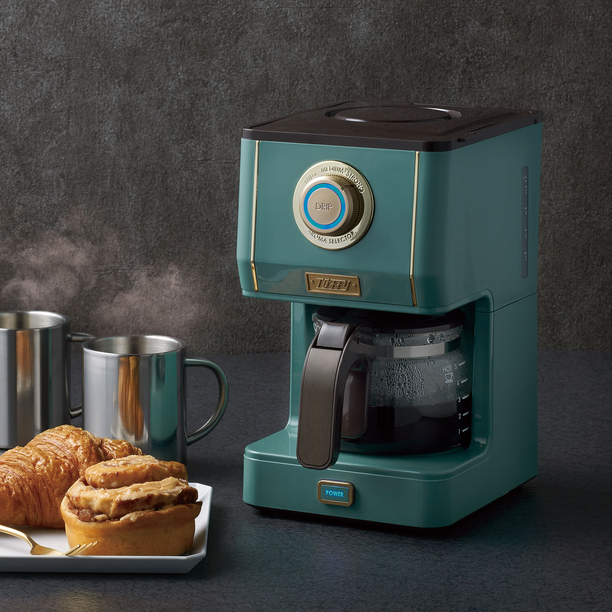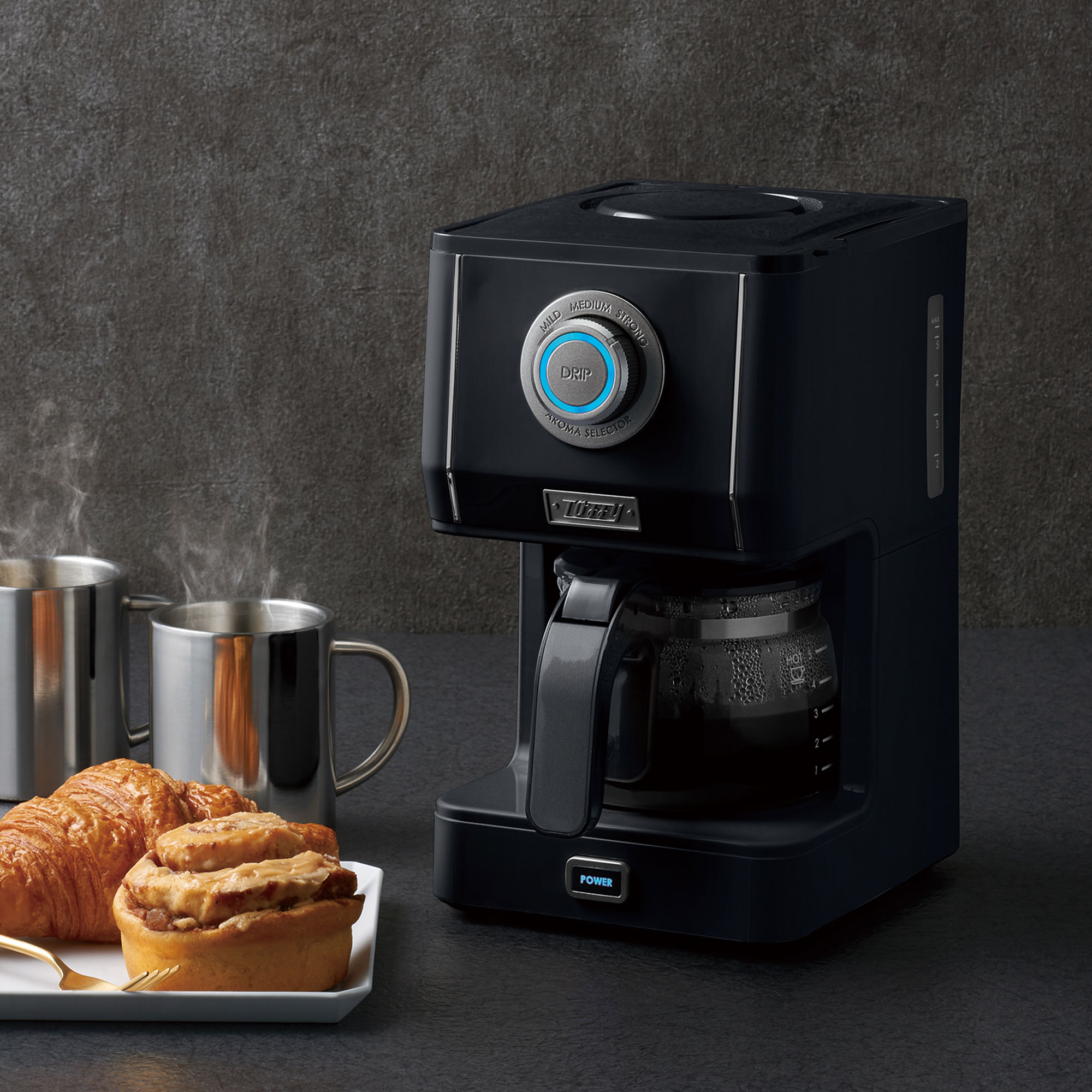 大口注文・法人のお問い合わせはこちら「間欠抽出」でハンドドリップのように入れられ、自宅でこだわり本格コーヒーが楽しめるコーヒーメーカーです。カフェに置いてありそうなデザインとシックなカラーで、キッチンをおしゃれに彩ります。 こだわりのコーヒーを楽しみたい方やコーヒーメーカーのデザインにもこだわりたい方におすすめ。