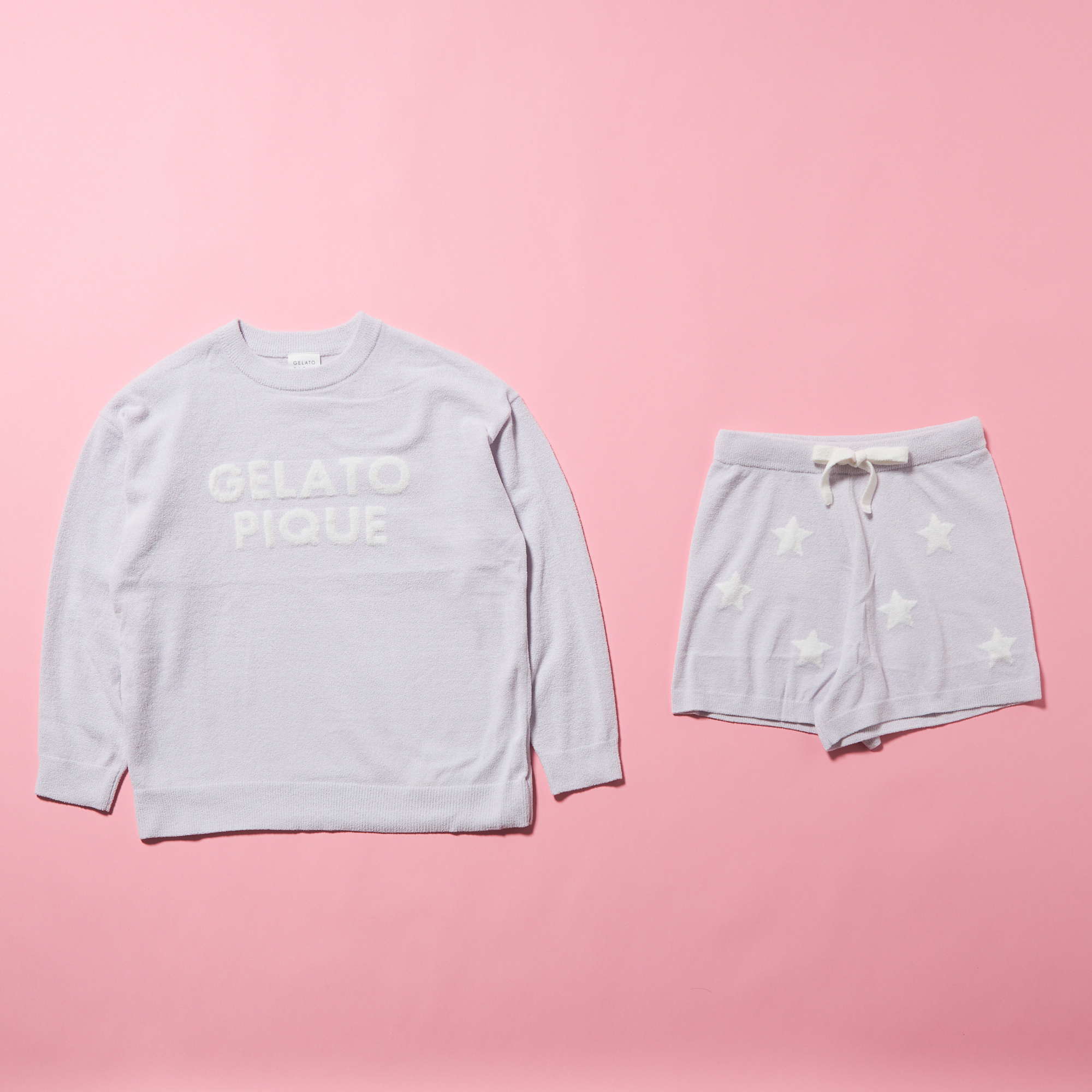 “大人のデザート”をコンセプトにしたルームウェアブランド「gelato pique(ジェラートピケ)」より、大きなロゴジャカードを入れたプルオーバーと、ポップなスター柄ジャカードのショートパンツを組み合わせたセットアイテムをお届けします。