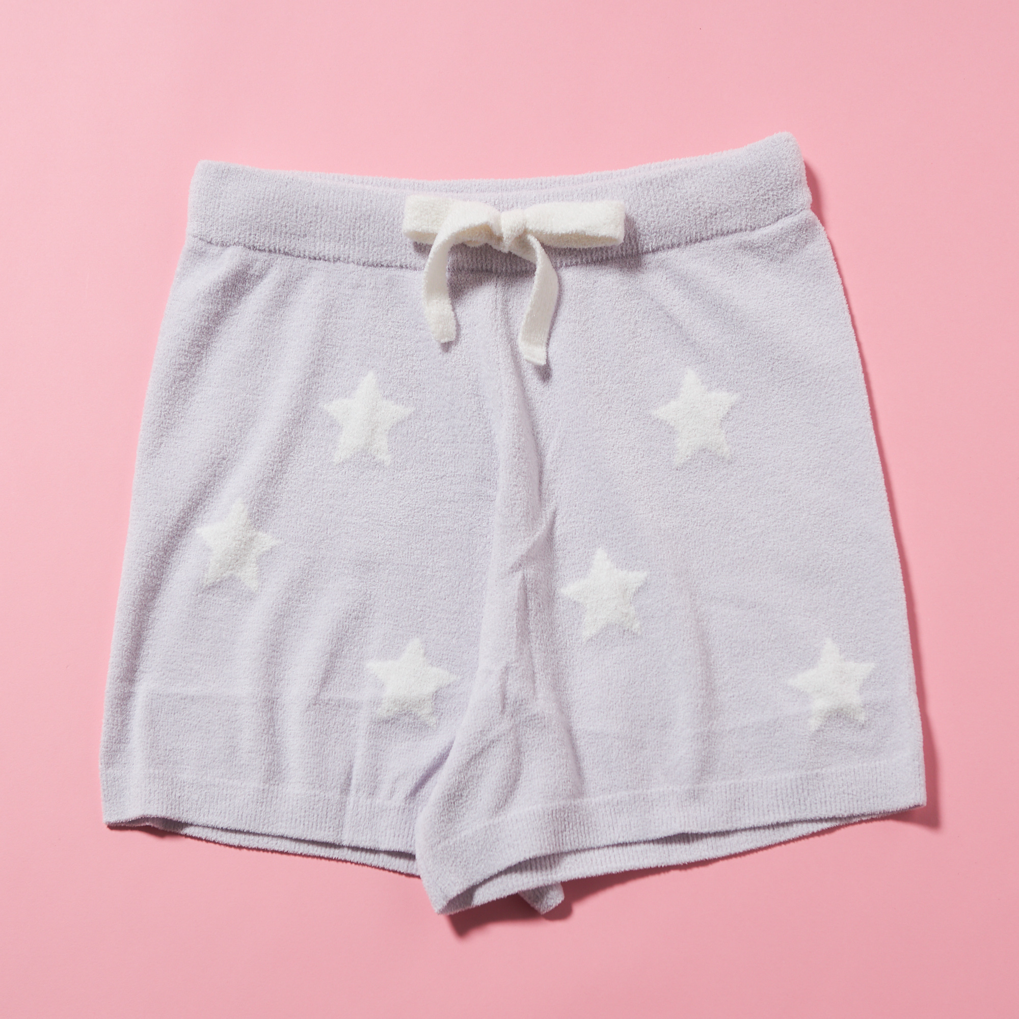 大口注文・法人のお問い合わせはこちら大きなロゴジャカードを入れたプルオーバーと、ポップなスター柄ジャカードのショートパンツを組み合わせたセットアイテムです。とろけるような滑らかな毛足の短いニットは、肌触りもよく季節の変わり目にもぴったりの素材感。