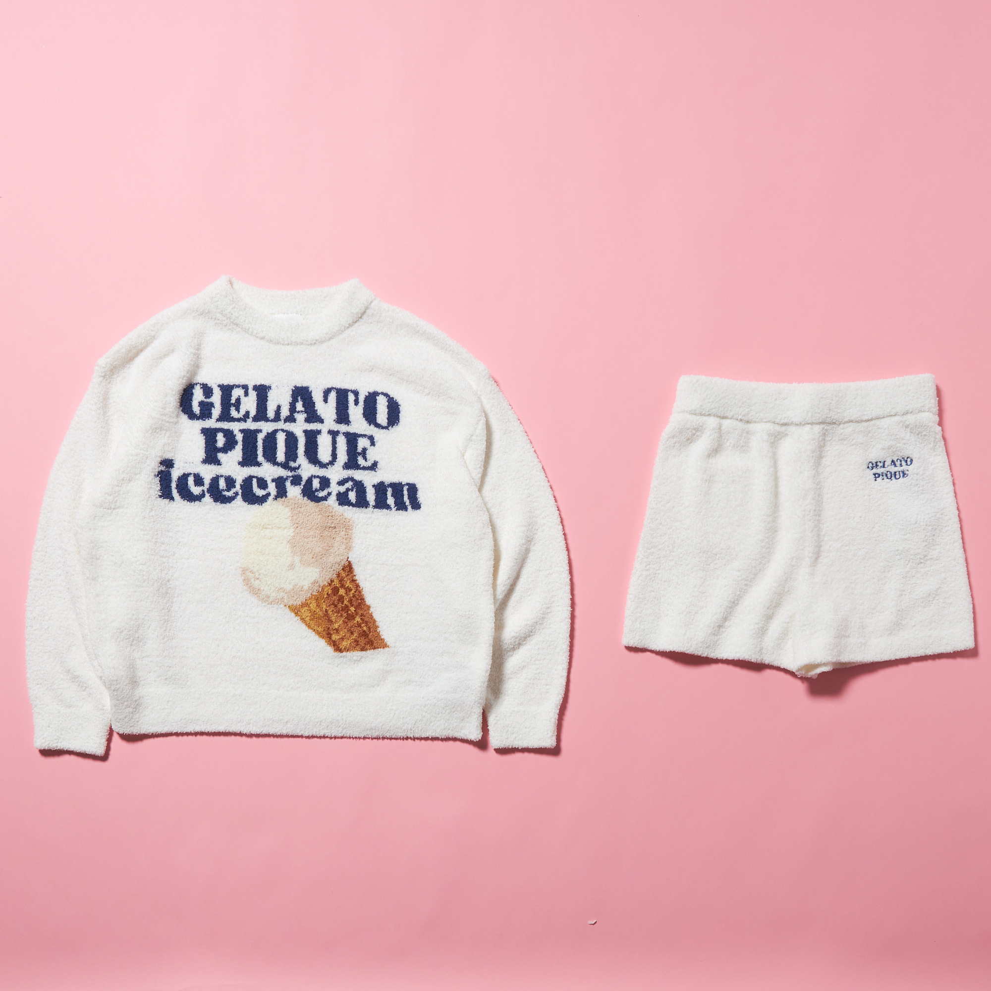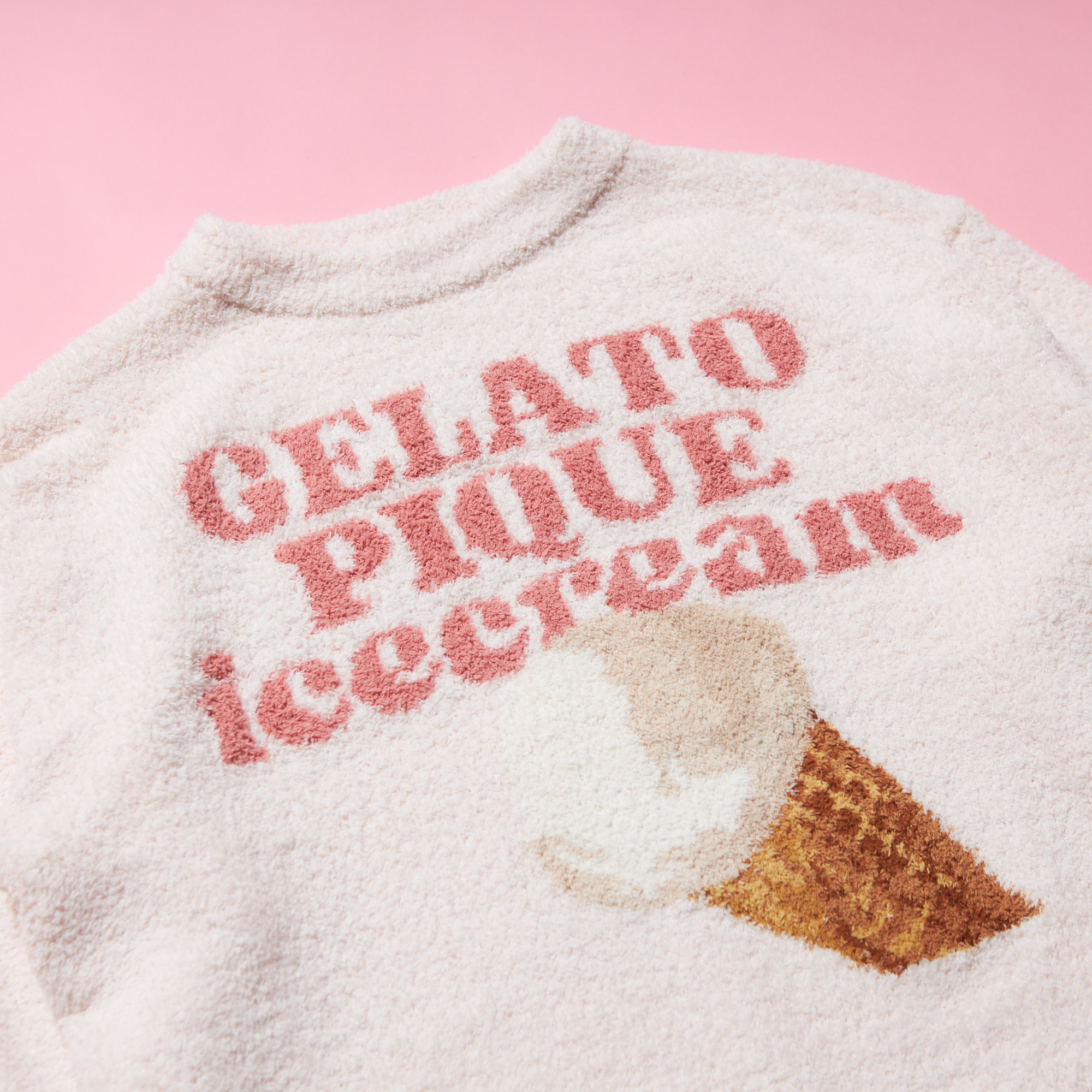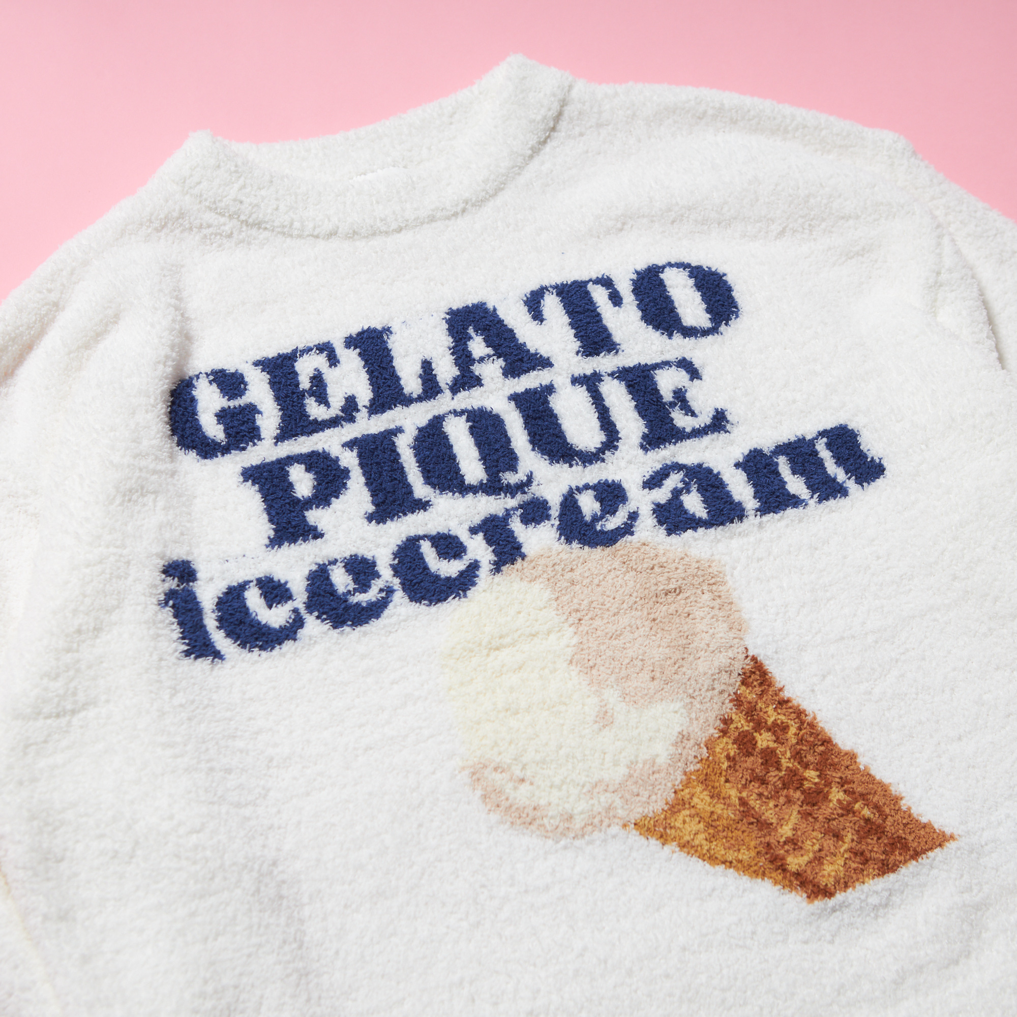 “大人のデザート”をコンセプトにしたルームウェアブランド「gelato pique(ジェラートピケ)」より、ポップなカラーロゴと、キュートなアイスロゴを組み合わせたキャッチーなプルオーバー&ショートパンツセットです。色はやさしいオフホワイトとピンクの2色展開。
