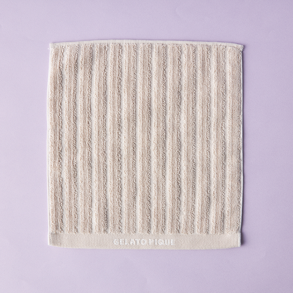 ユニセックスで使用できるストライプ柄ハンドタオルです。シンプルながらも凹凸感を出したストライプは、裏と表で見え方が異なるように配されています。ヘムにはブランドロゴも。色はオフホワイトとベージュの2色からお選びいただけます。
