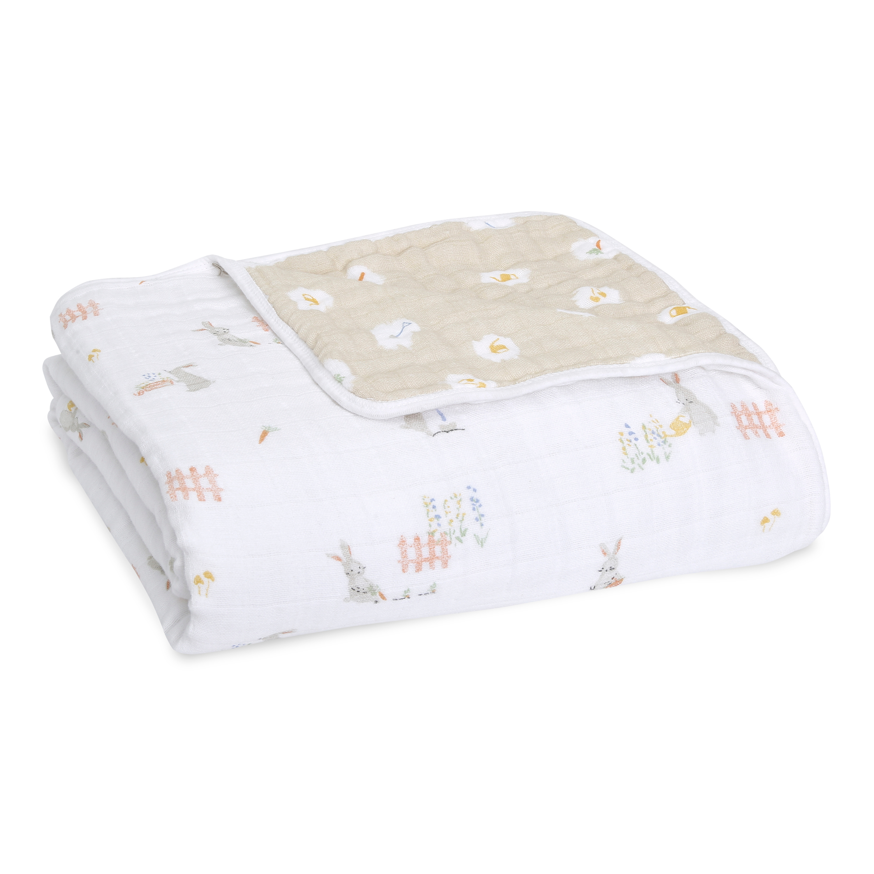 大口注文・法人のお問い合わせはこちら「aden+anais(エイデンアンドアネイ)」こだわりのモスリンコットンを4枚に重ねたドリームブランケット。 120cm×120cmの大判サイズなので就寝時やお昼寝時、お出かけなどのさまざまなシーンで大活躍します。厚みはありますが通気が良いので、赤ちゃんを快適に保てます。