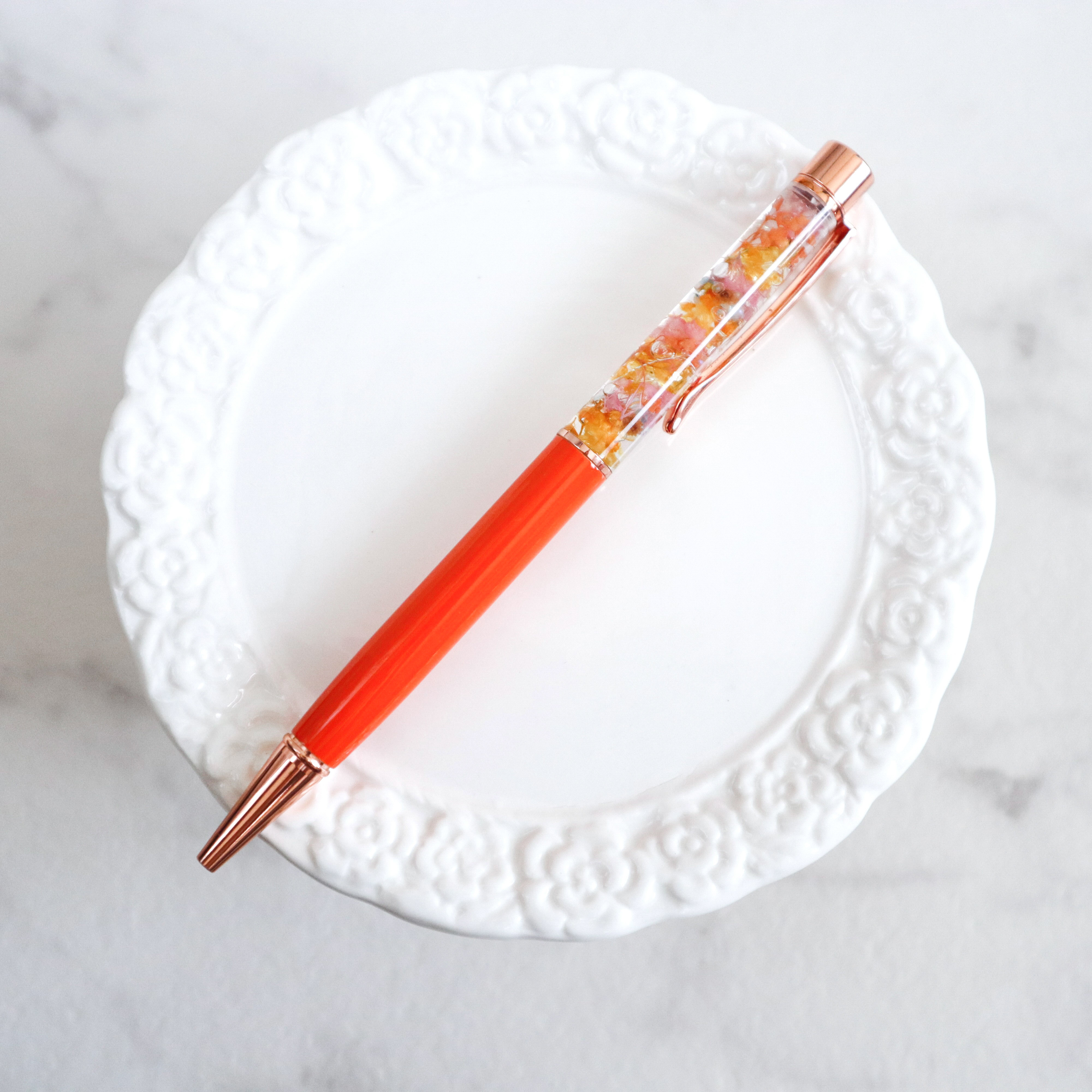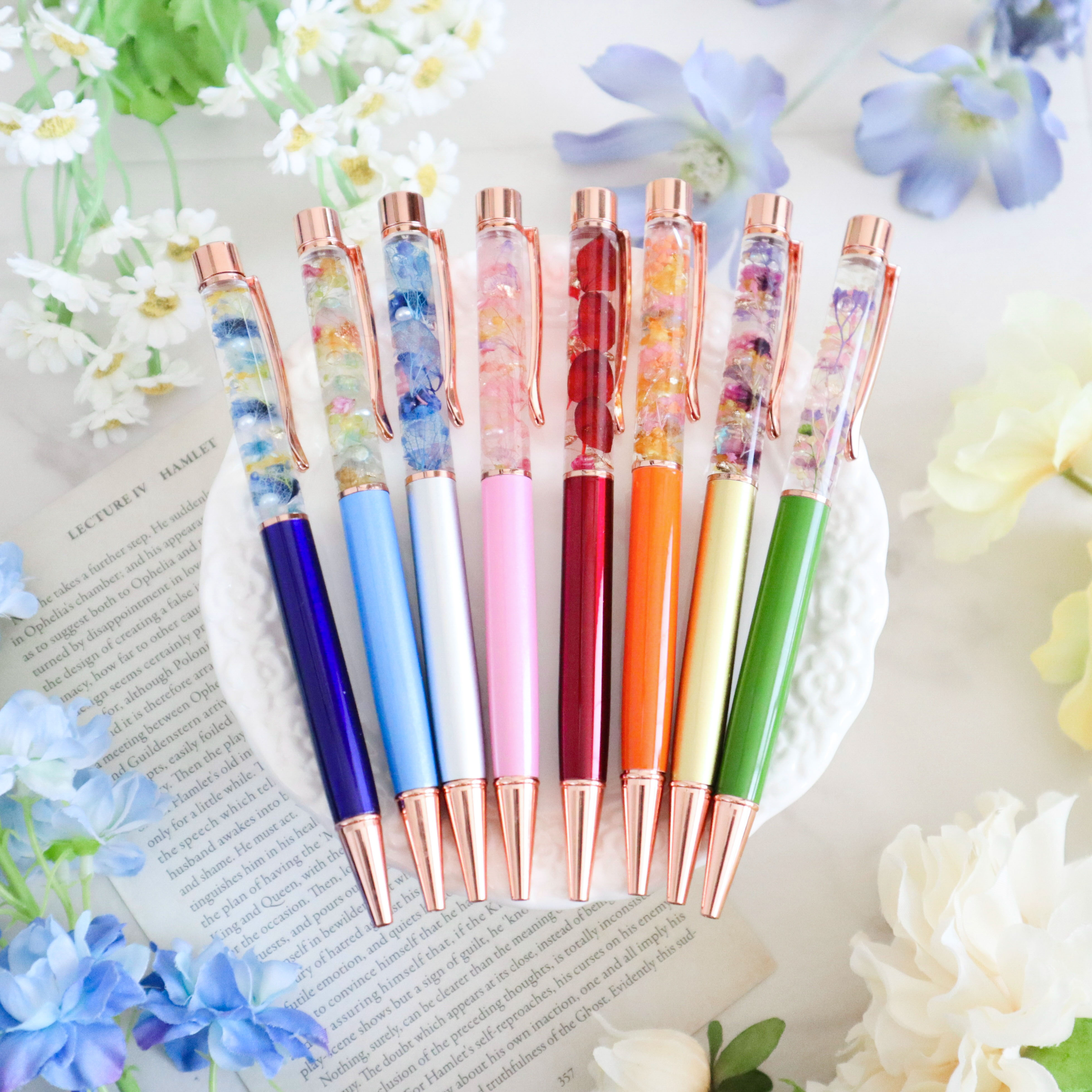 大口注文・法人のお問い合わせはこちら可愛いお花が詰まったカラフルなボールペン。 お花が光に反射してキラキラと輝き、持っているだけで明るい気分にさせてくれるボールペンです。 可愛くて実用性のあるハーバリウムペンはプレゼントにぴったり!もちろんご自分用にもおすすめです。 ギフト用のクリアケースに入れてお届けします。