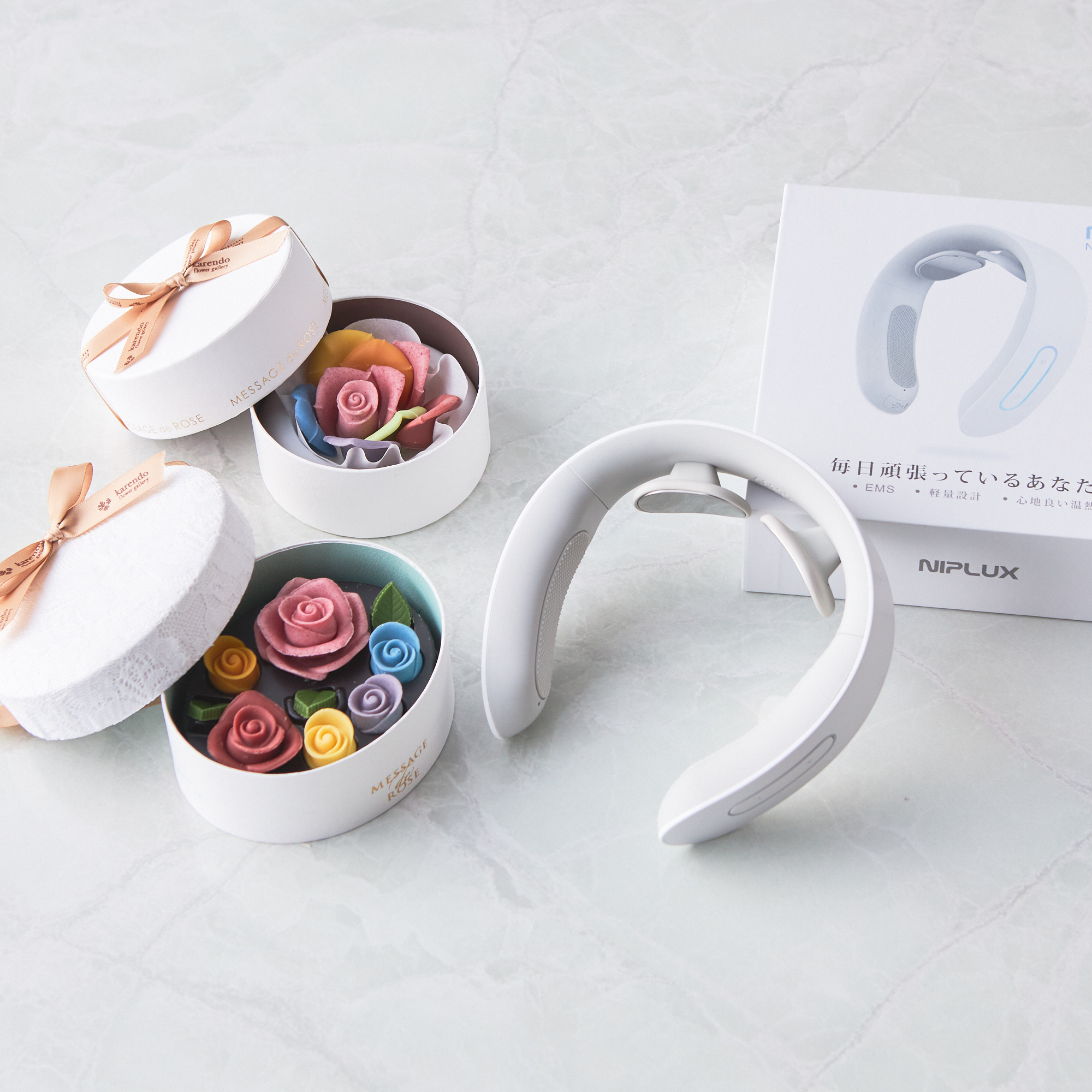 関東・関西を中心に全国店舗展開しているフラワーを中心としたギフトショップ「karendo(カレンド)」のバラに見立てたチョコレートと毎日の生活に商品をプラスすることで、ちょっとした幸せを感じることができる「NIPLUX(ニップラックス)」のネックケアセットがタンプ限定で登場!