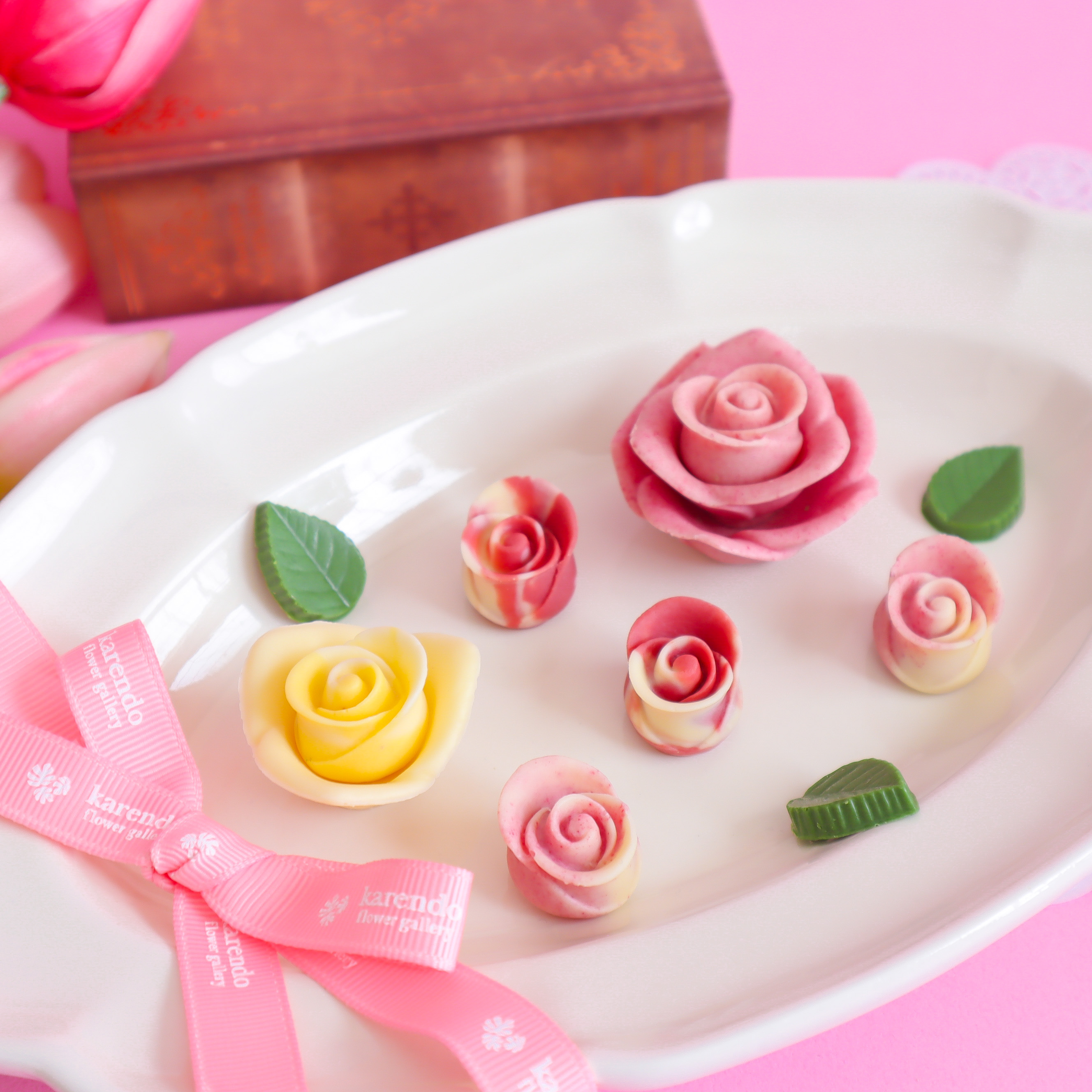 まるで花びらを味わうような、繊細な口当たりとやわらかな味わいのチョコレートが特徴の「MESSAGE de ROSE」と「ドキドキ・ワクワク」をコンセプトとする「karendo(カレンド)」がコラボレーションしたチョコレートです 独自の製法でフルーツそのものを配合し、フルーティな味わいをとじこめ、本物の果実を食べているような芳醇な味わいのチョコレートです。