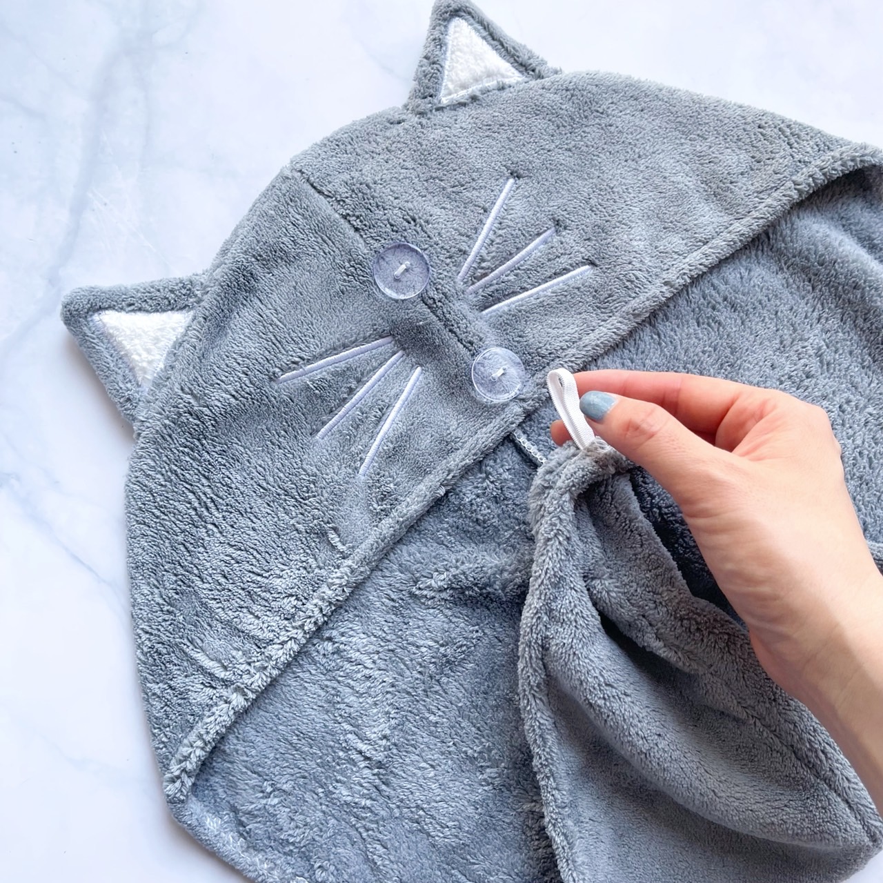 とにかく髪が早く乾く!かぶって可愛い!美髪ケアもできちゃうネコモチーフのヘアタオルです。特殊なファイバー素材でできているのでシャンプー後フードをかぶり、髪をくるくる巻き付けるだけで、しっかり吸水してくれ、ドライヤー時間がぐっと短縮! 髪をゴシゴシと擦らないから、髪の摩擦が減り、髪の負担が軽減されパサつきも防ぐことができるので、被るだけで美髪ケアができちゃいます。 また、ネコ耳タオルを被りながら、スキンケアしたり、スマホを見たり。髪をしっかり固定できるから、髪の吸水をしている間に“ながら美容”できるのも人気のヒミツです。