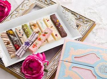 「マリーアントワネットが愛したお菓子」のイメージをコンセプトに、華やかなティータイムを楽しんでいただける焼き菓子を、日々創造しています。 「ギフトは心を贈るもの」だから、贈る方も贈られた方にも、心から喜んでいただけるようにと、パティシエたちがオシャレでおいしく唯一無二のスイーツを手作りしています。