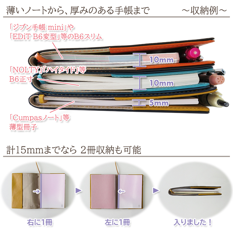 | 収納サイズ | B6サイズ(縦182mm×横128mm×厚み15mmまで) |