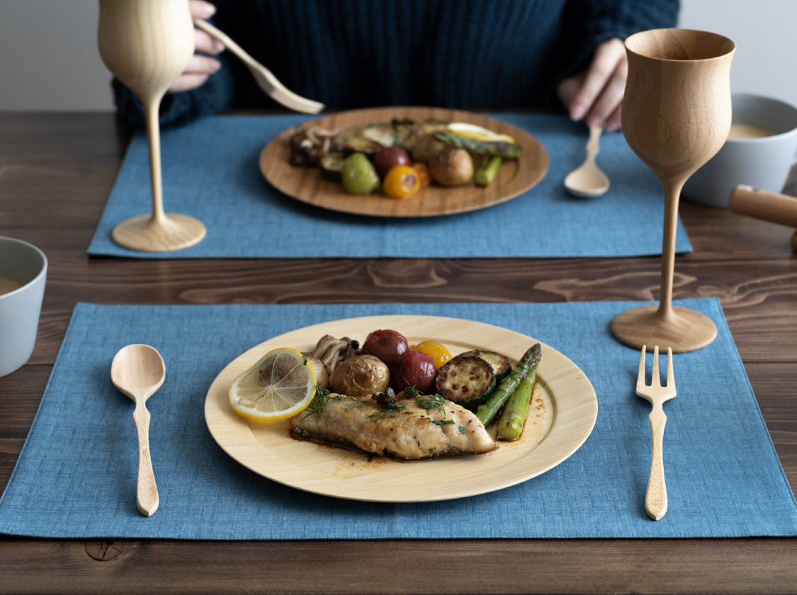木製食器の多くは、素材の性質上、素朴で厚ぼったい印象のデザインが多く、ギフトとしてはあまりスマートではない印象でした。 天然素材のナチュラル感を保ちつつ、よりスタイリッシュな印象の商品となることを目指し、シンプルかつ洗練されたカーブ形状や、高級感を感じさせるリム部分の幅と角度をデザイン設計を行いました。 天然素材のぬくもりを感じつつ、スマートに贈ることのできるおしゃれな食器として、現在のシルエットが生まれました。