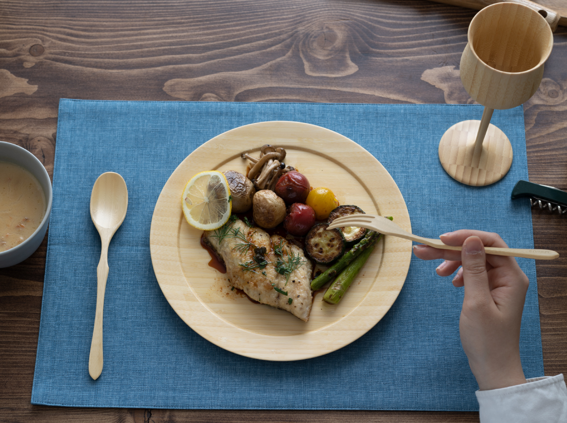 盛り付ける料理の邪魔をしないシンプルなデザイン。 天然素材ならではの薄さと軽さは、アウトドアでのご利用もおすすめです。