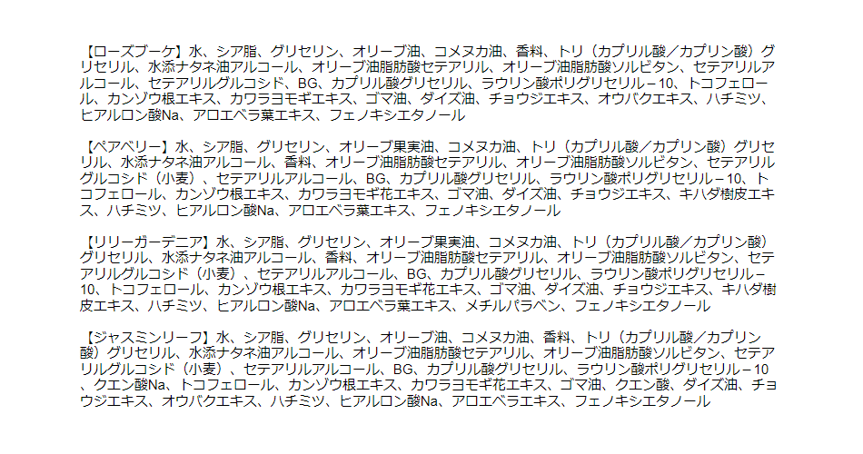 | 注意事項 | オイルなどの成分を含む商品は、航空危険物に含まれるため航空機に搭載することができません。そのため離島などの航空便を使用する地域にお住まいのかたへお届けの場合は、船便に変更するため1週間前後お届けが遅くなる可能性がございます。 |