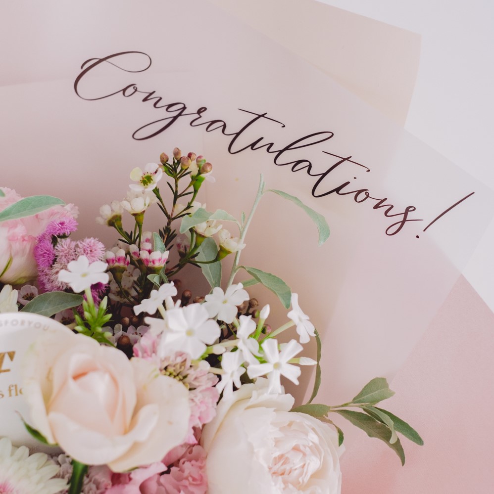 1.Thank you!(ありがとう!) 2.Congratulations!(おめでとう!) 3.Happy Birthday!(誕生日おめでとう!) 4.With Love(愛を込めて) ※オプション「ラッピングペーパー」にて、ご選択ください。 ※「なし」をご選択いただいた場合は、通常のラッピングで仕上げます。