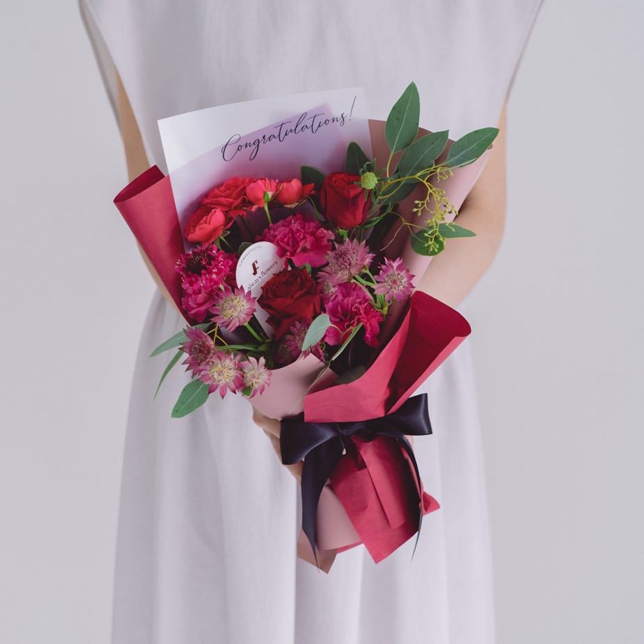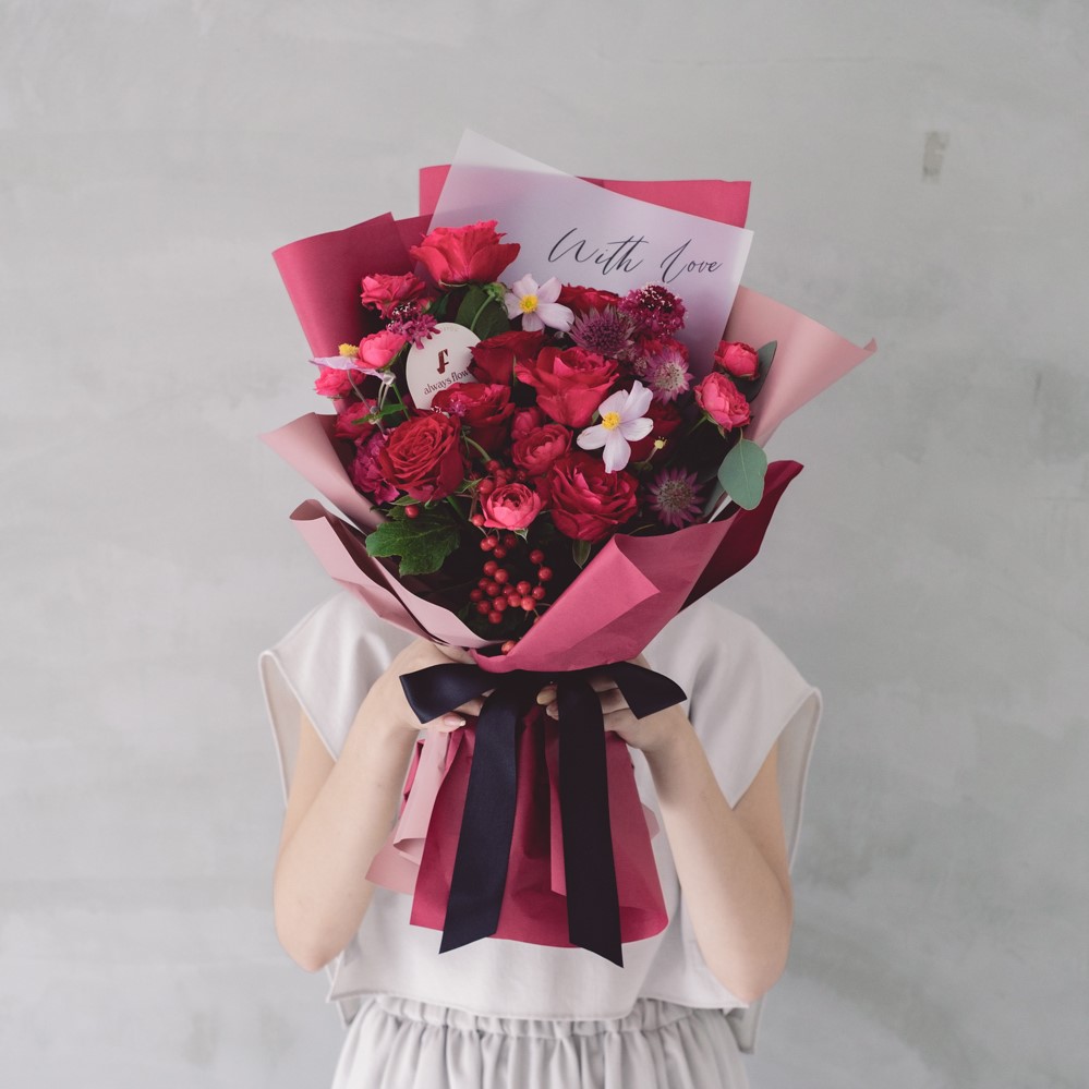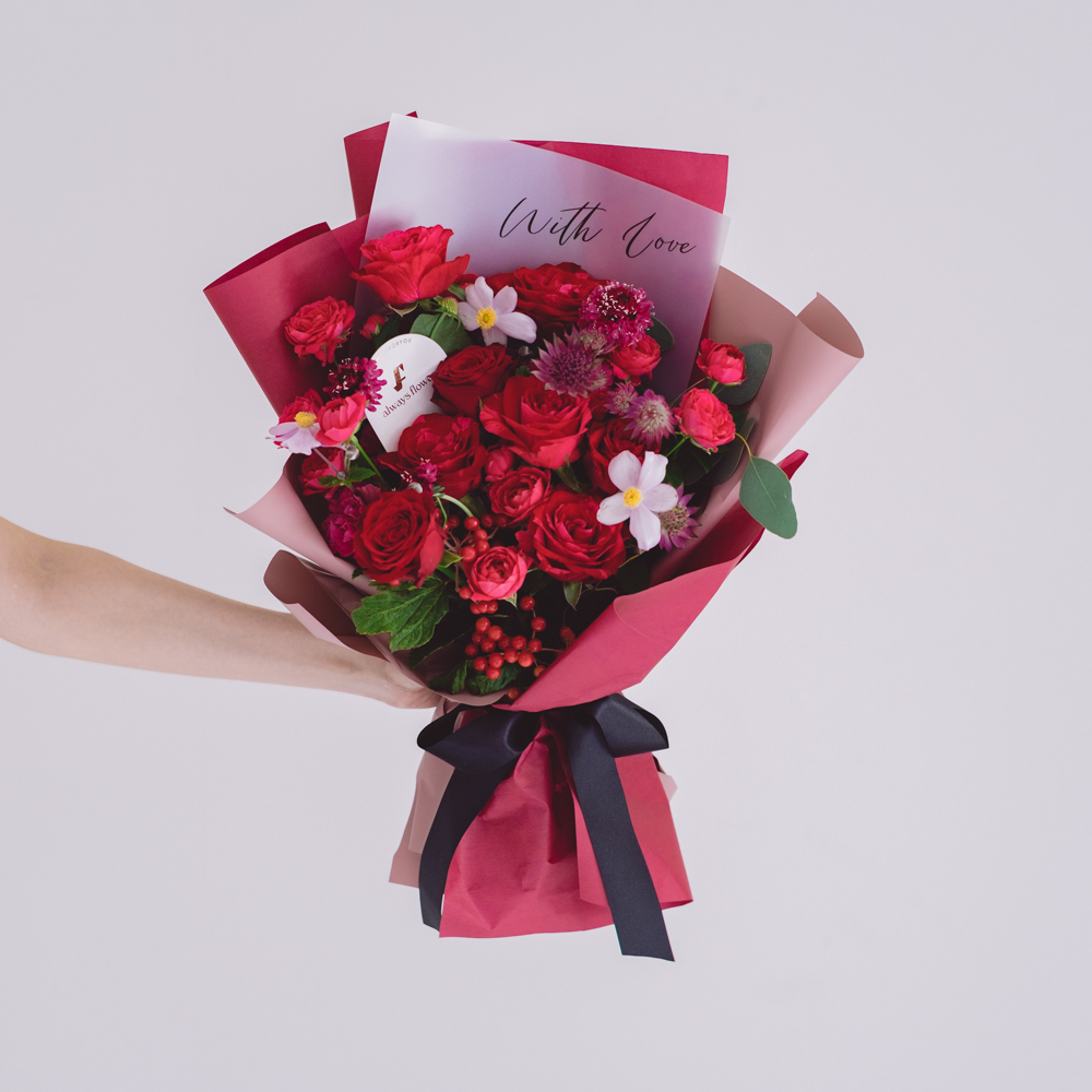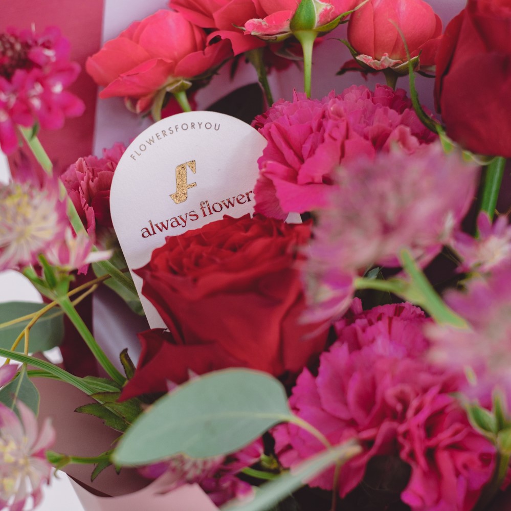 女性のココロがときめくフラワーアイテムを提案する「Always Flowers(オールウェイズフラワーズ)」から、ワンメッセージを添えることができるギフトブーケをお届け。季節のレッドの花々で、ナチュラルで華やかにデザインされるギフトブーケです。