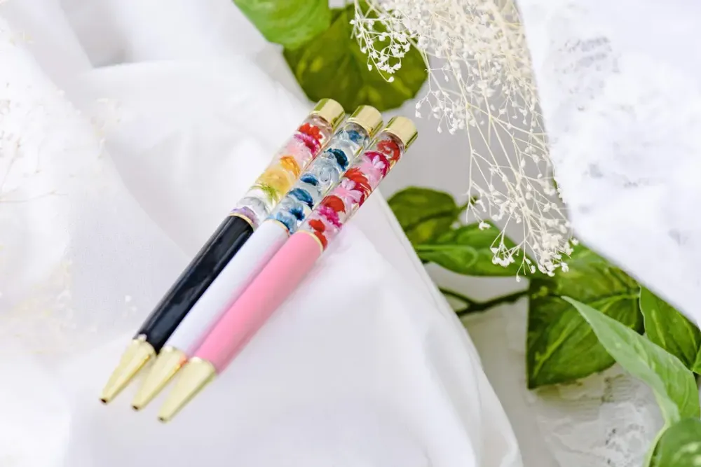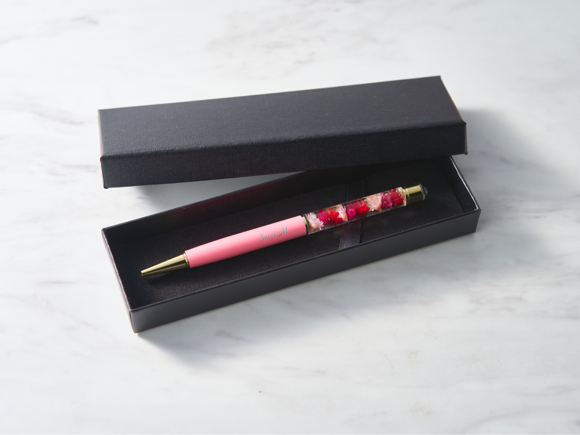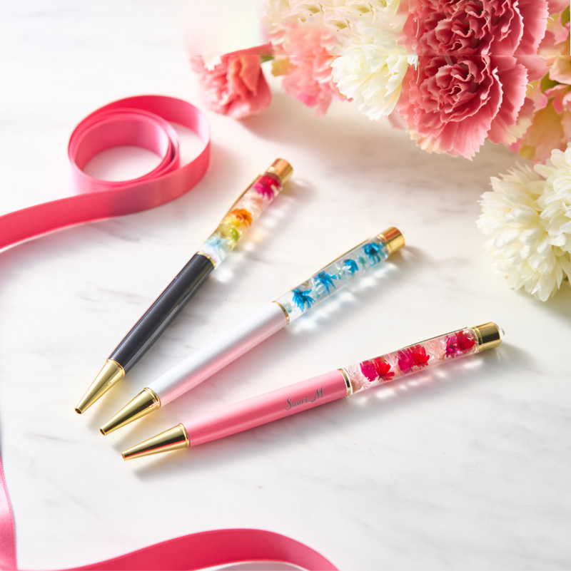 フラワーアーティストがお花のバランスにもこだわりひとつひとつ丁寧に手作りしているハーバリウムボールペンは、デスクにひとつあるだけで癒されること間違いなし。