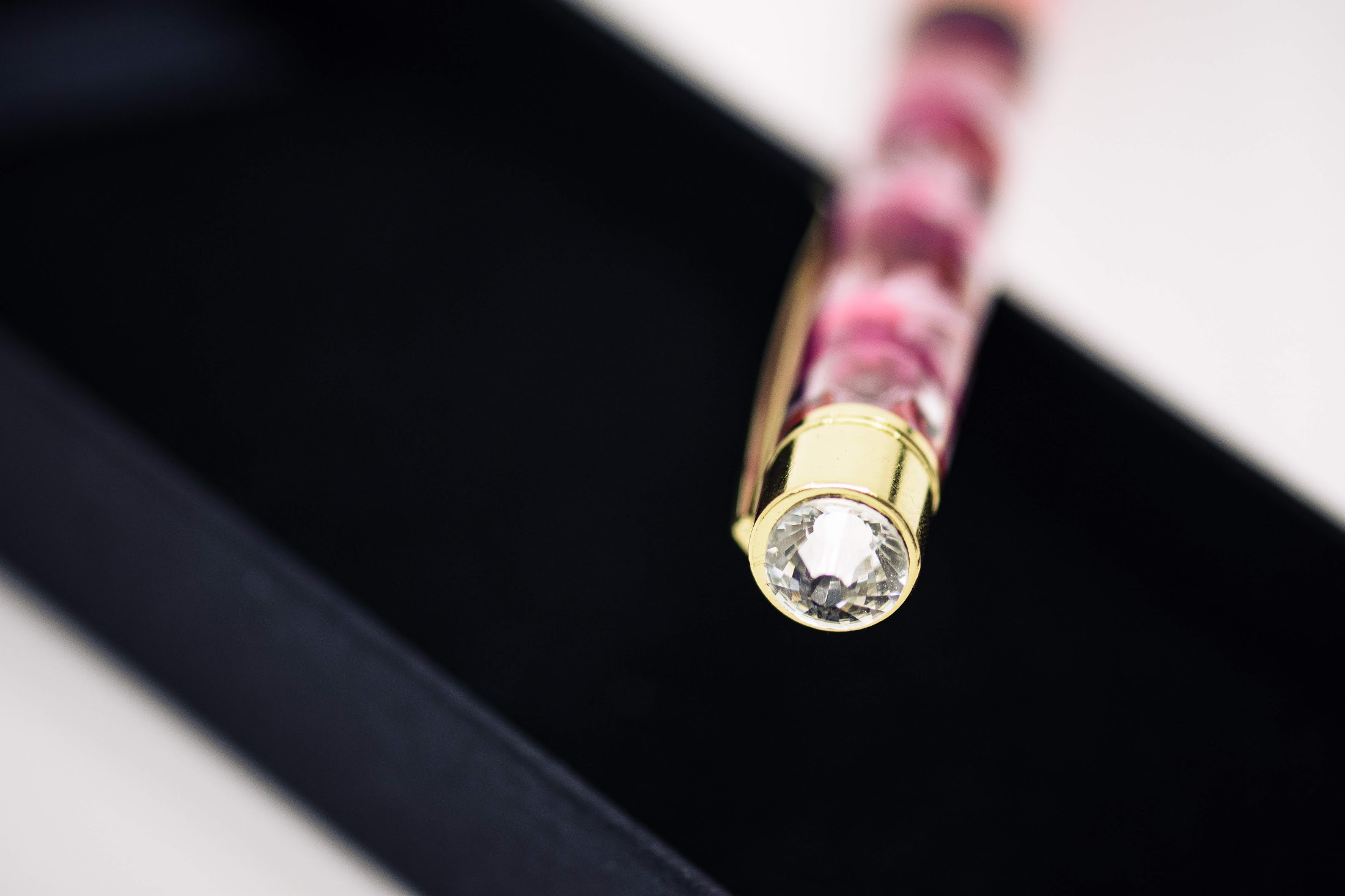 ボールペンのペントップには、大粒のジュエルをあしらっています。