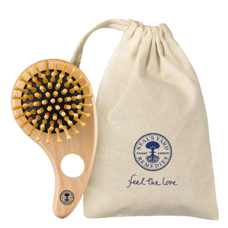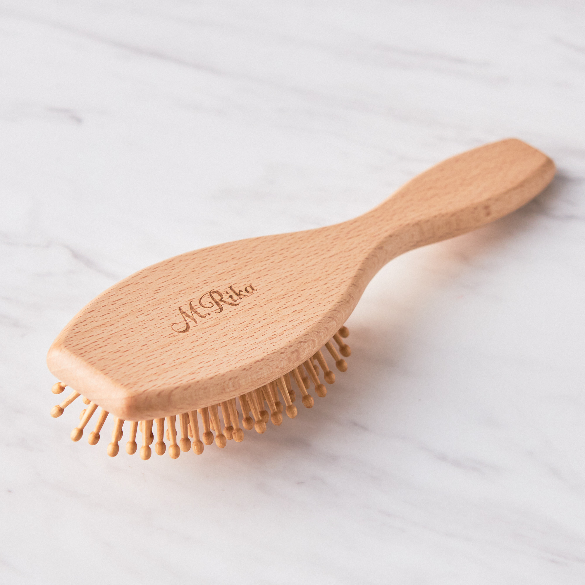 成長が早くサスティナブルな素材である竹をピンに用いたヘアブラシ。 静電気が起きにくく、また先が丸いため髪や頭皮を傷めません。 また、竹から出る自然な油が髪にツヤをもたらします。