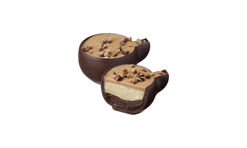 サクサクした食感が特徴的なキャラメルとライスクリスプが入ったアーモンドプラリネをミルクチョコレートで包みました。口に入れた瞬間に異なる2つの食感はスイーツのクロッフルを彷彿とさせる、香ばしくも優しい甘さが口いっぱいに広がる心躍るひと粒。