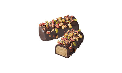 ストロベリーチャンクが隠し味のピスタチオプラリネをダークチョコレートで包み、ドライストロベリーとクラッシュしたピスタチオで華やかに飾りました。香り豊かでコクのあるピスタチオプラリネが深みのあるダークチョコレートと混ざり合い、まるでテリーヌショコラを食べているかのようなしっかりとした味わいです。