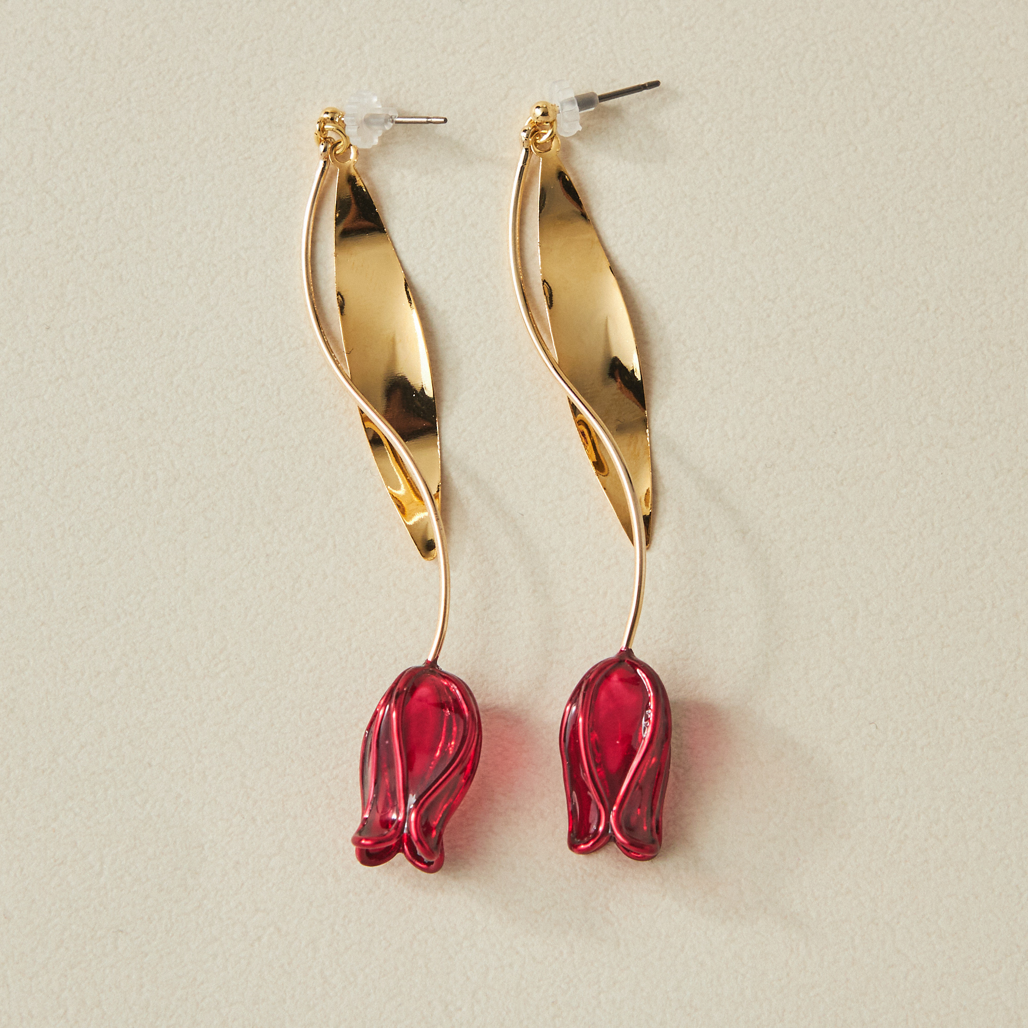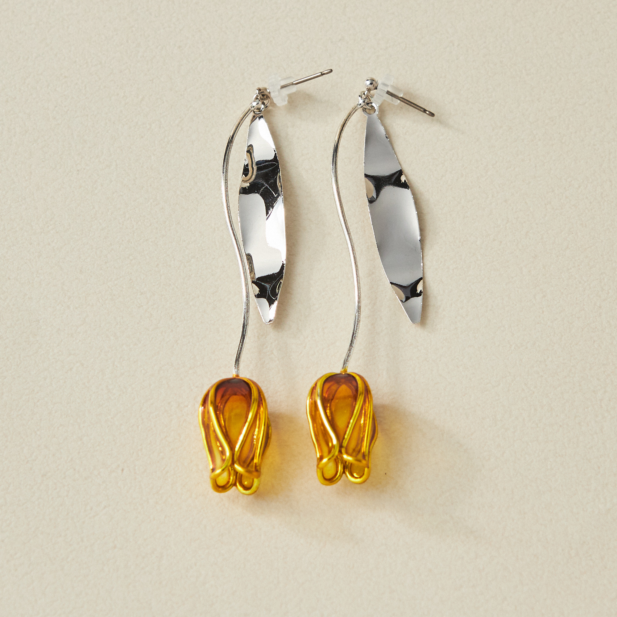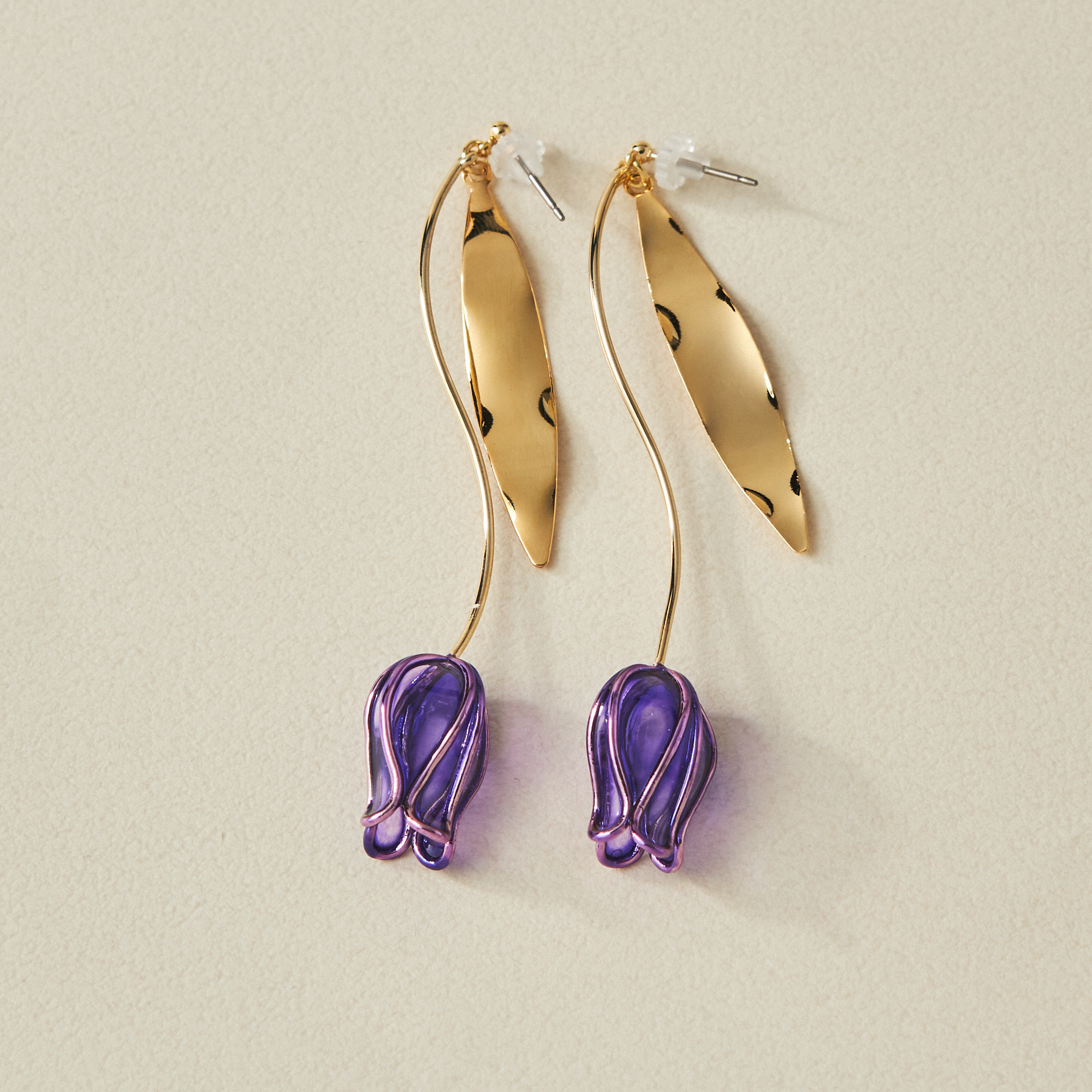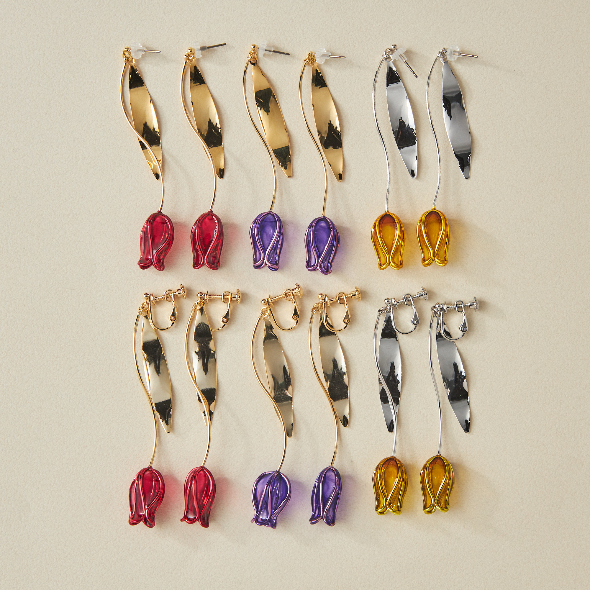 大口注文・法人のお問い合わせはこちら日々を楽しく、自分らしく生きる女の子のためのアクセサリーブランド「gargle」の透明感のある色で、光を通すととてもキレイなチューリップピアス/イヤリング。葉や茎がメタルで出来ているので、大人の方もコーディネートのワンポイントとして取り入れやすい可愛いアイテムです。