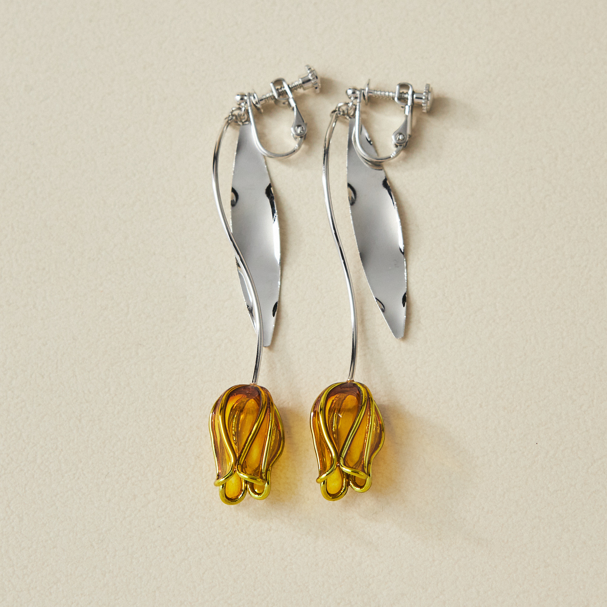自分らしく生きる女の子のためのアクセサリーブランド「gargle」の透明感のある色で、光を通すととてもキレイなチューリップピアス/イヤリング。葉や茎がメタルで出来ているので、大人の方もコーディネートのワンポイントとして取り入れやすい可愛いアイテムです。