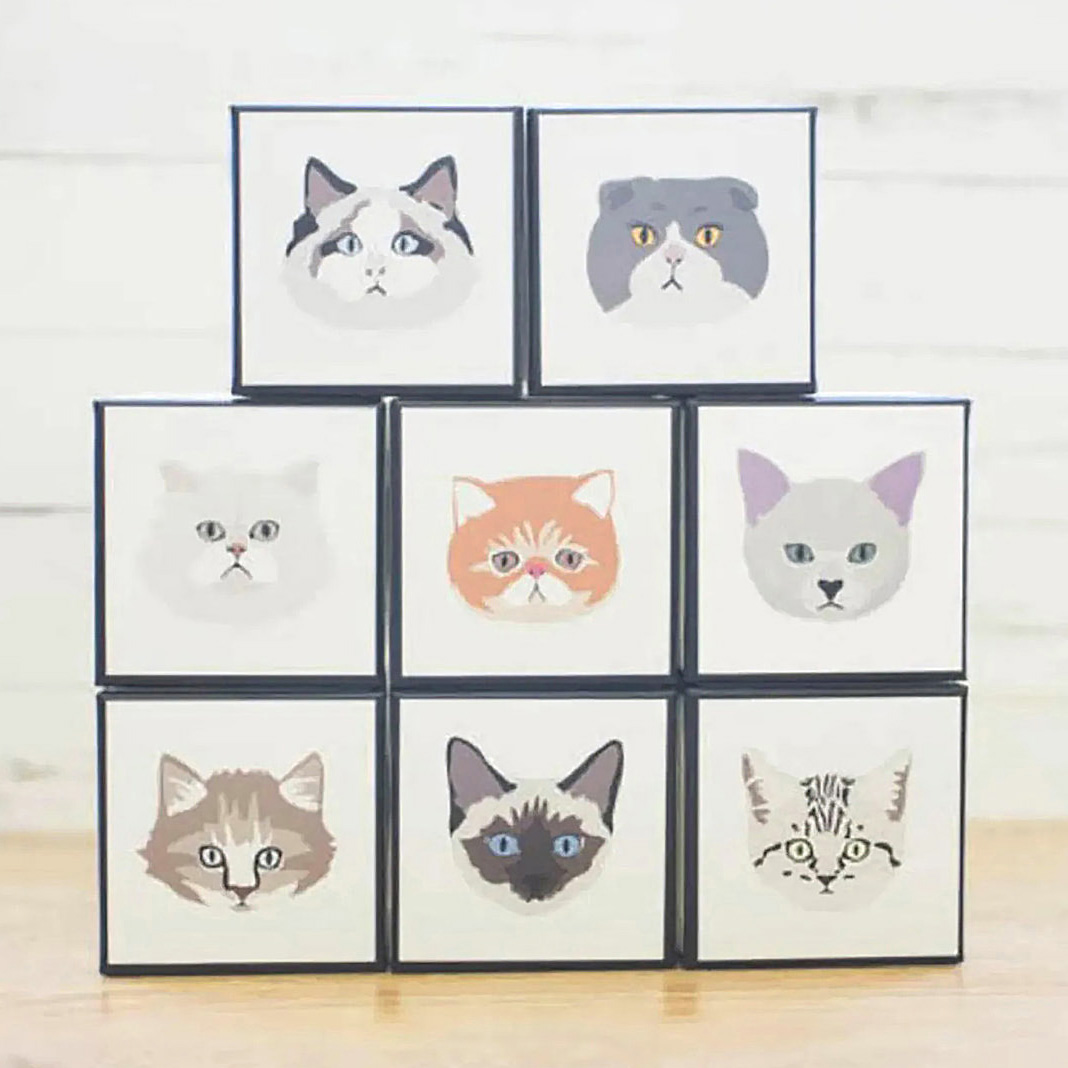 ウエディングデザイナー、スタイリストの2人が作ったハンカチブランド "MR.&MRS .CHIEF"からネコのシリーズが届きました。 とぼけたような顔の子からスッキリした顔立ちの子まで、8種のかわいらしいネコ刺繍がたまらないデザインです。 可愛いネコのイラストが描かれたBOXとセットになっているので、贈り物にもぴったりです。 ぜひ、贈る相手の雰囲気に合わせて、デザインを選んでみてくださいね。
