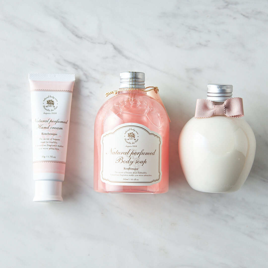 | 容量 | 【ボディソープ】 300ml 【ハンドクリーム】 50g 【ボディミルク】 230ml |