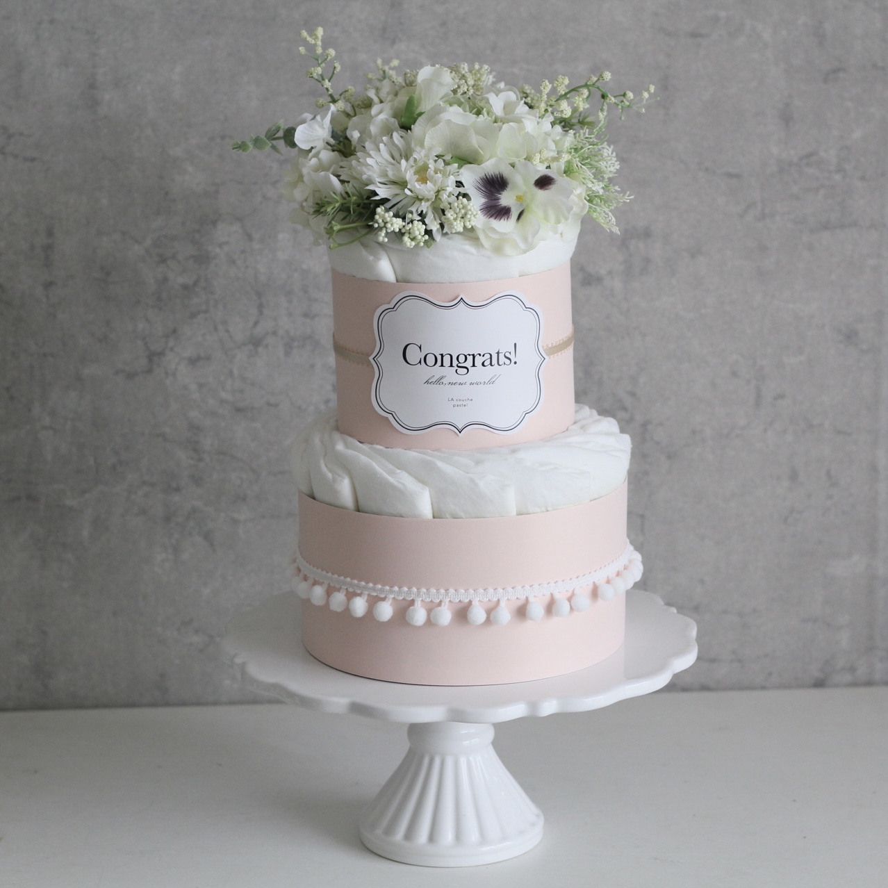 大口注文・法人のお問い合わせはこちらフレッシュな気持ち安らぐブーケ付きのおむつケーキ。 ベビーピンクとベビーブルーの2色展開でご用意しました。 ベビーはもちろん、頑張ったママへの贈り物としても喜ばれています。