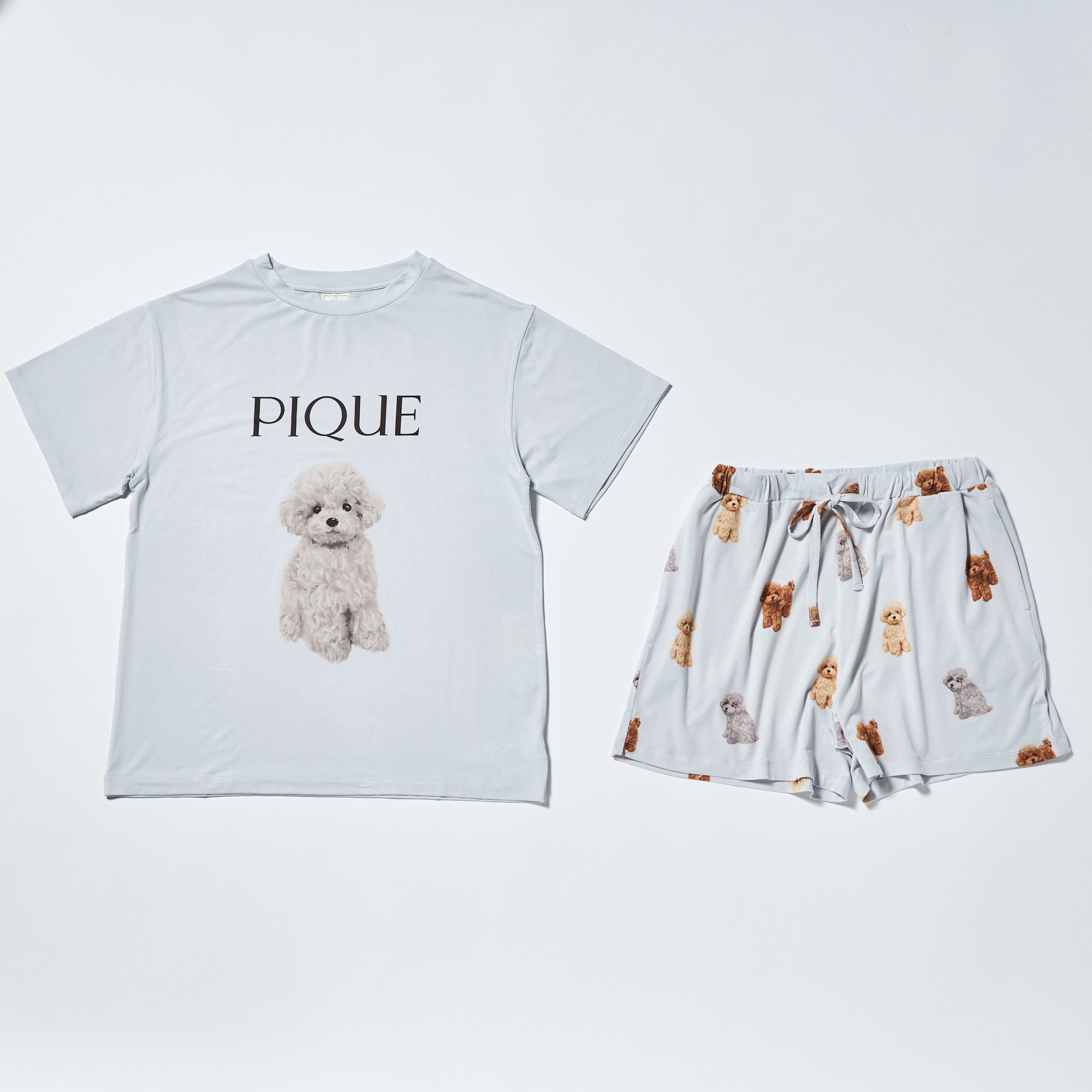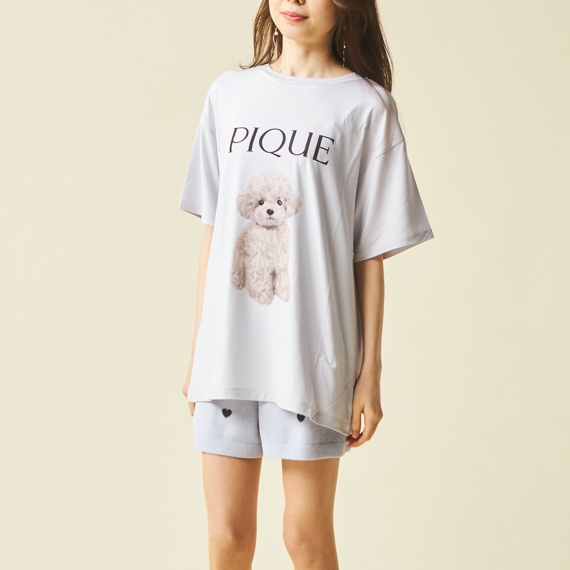 トイプーのワンポイントに「PIQUE」のロゴを絡めたTシャツは、とろんとソフトな肌触りと余裕のある首周りがポイントです。