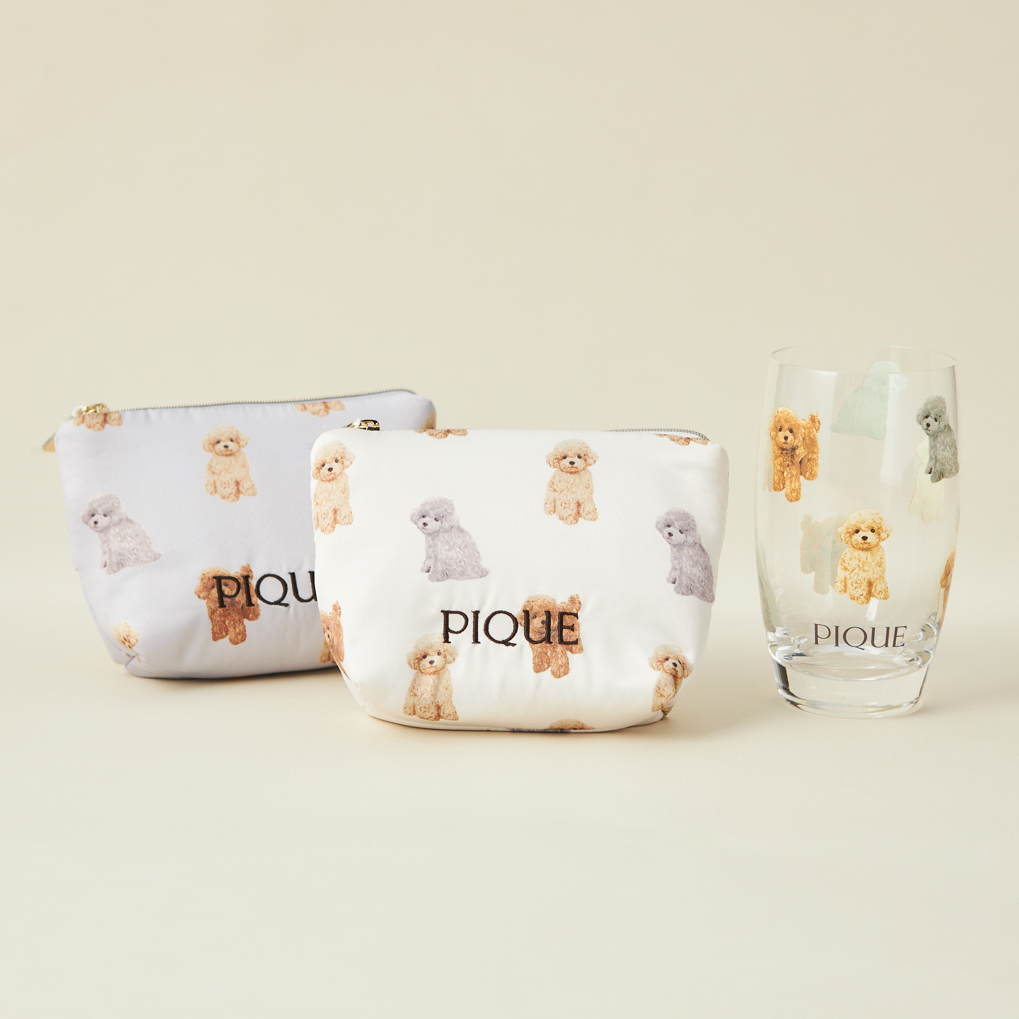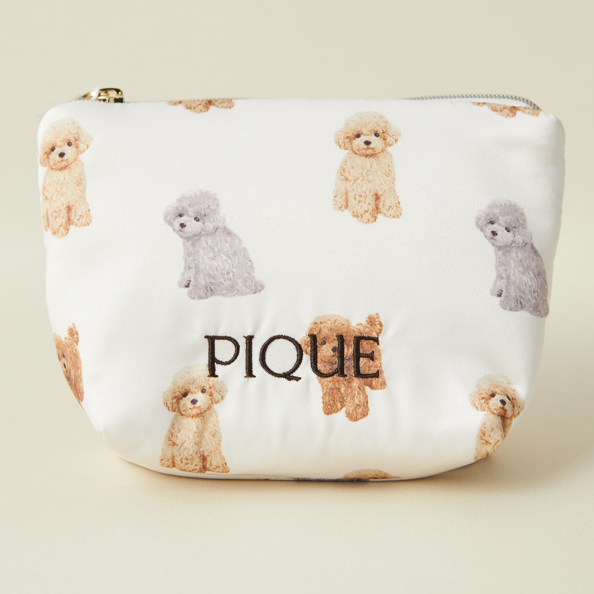 “大人のデザート”をコンセプトにしたルームウェアブランド「gelato pique(ジェラートピケ)」の、つぶらな瞳がたまらない3色のふわふわトイプードル柄を散りばめた小物シリーズです。サテン生地のティッシュポーチは淡いCREAM、GRAYの2色からお選びいただけます。