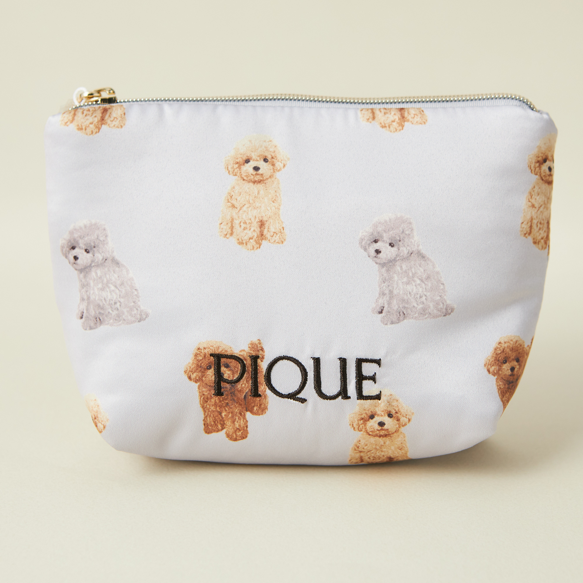 つぶらな瞳がたまらない3色のふわふわトイプードル柄を散りばめた小物シリーズです。 同シリーズのルームウェアや小物と組み合わせて、トイプードル好きな方へのギフトにもおすすめです。
