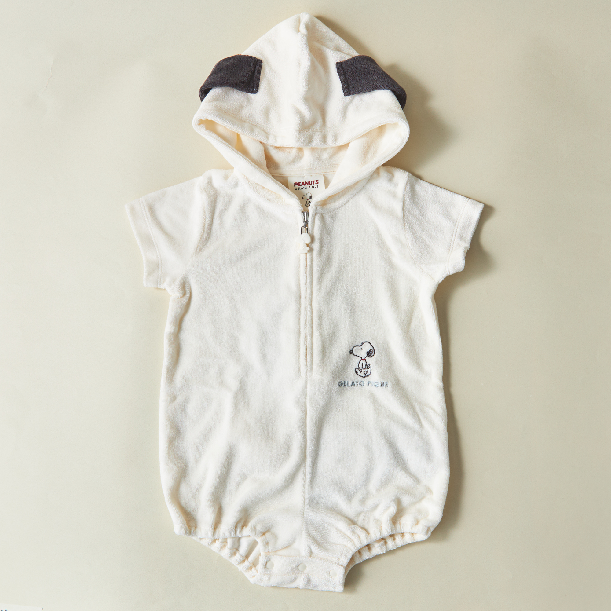 “大人のデザート”をコンセプトにしたルームウェアブランド「gelato pique(ジェラートピケ)」。「PEANUTS」との大人気コラボがこの夏も実現。柔らかなパイル素材を使用したBABYロンパースです。ワンポイントで刺繍を添えるなど、ディテールも細部までこだわりました。