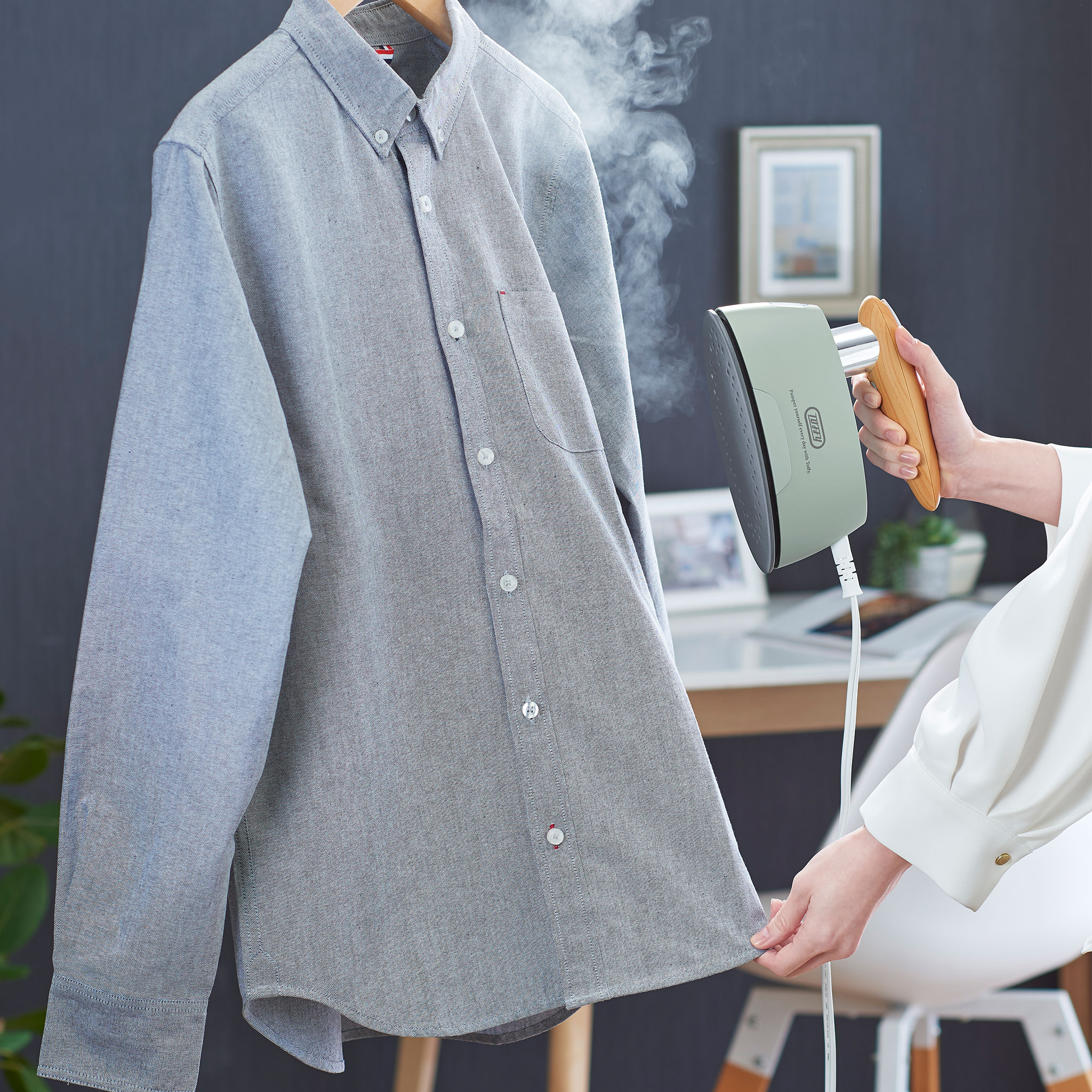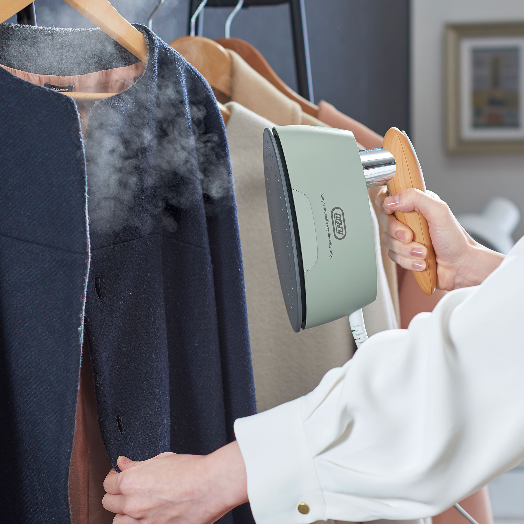 衣類スチーマー最高水準の最大20g/分の強力スチームで服をハンガーにかけたままでも簡単にシワ取りができます。電源を入れて約50秒でスチームが出るので、忙しい朝にもピッタリです。